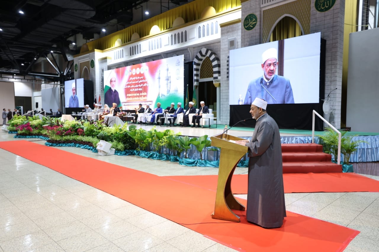 وبَيَّنَ فضيلة الإمام الأكبر أن الأزهر الشريف ومجلس حكماء المسلمين يستهدفان تعزيز السِّلم وتأكيد ثقافة التعايش والاحترام المتبادل، مشيرًا إلى أنَّ السلام المحلي تجلى في مبادرة "بيت العائلة المصرية" التي أطلقها الأزهر بالتعاون مع الكنائس المصرية، للقضاء على الفتن الطائفية ولمِّ شمل النسيج الوطني المصري، أمَّا فيما يتعلق بالسلام الإقليمي فقد تبنَّى الأزهر ومجلس حكماء المسلمين نهجًا للمِّ شمل الأمة الإسلامية من خلال حوار إسلامي إسلامي يجمع كل مدارس الفكر الإسلامي، وبخاصة السنة والشيعة، أمَّا فيما يتعلق بالسلام العالمي فقد تجلَّى في انفتاح الأزهر وحكماء المسلمين على المؤسسات الدينية والثقافية في الغرب كالفاتيكان وكنيسة كانتربري ومجلس الكنائس العالمي، وقد تُوِّجَت هذه الجهود بتوقيع وثيقة الأخوة الإنسانية بين الأزهر والفاتيكان عام ٢٠١٩.