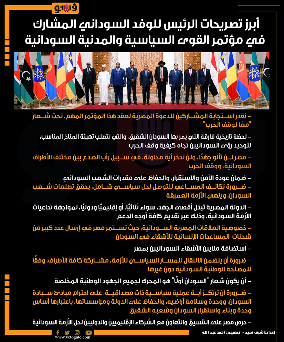 أبرز تصريحات الرئيس السيسي في مؤتمر القوى السياسية والمدنية السودانية (انفوجراف) الأحد 07/يوليو/2024 - 03:08 م 7/7/2024 3:08:55 PM الرئيس عبد الفتاح السيسي.فيتو أشرف سيد شارك طباعة 18 حجم الخط شارك طباعة الأطراف السودانية الازمة السودانية استقرار السودان ازمة السودان
