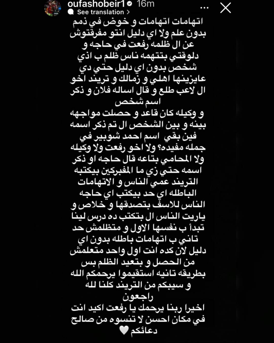 وجاءت تصريحات مصطفى شوبير عن الأزمة عبر ستوري صفحته علي النحو التالي: