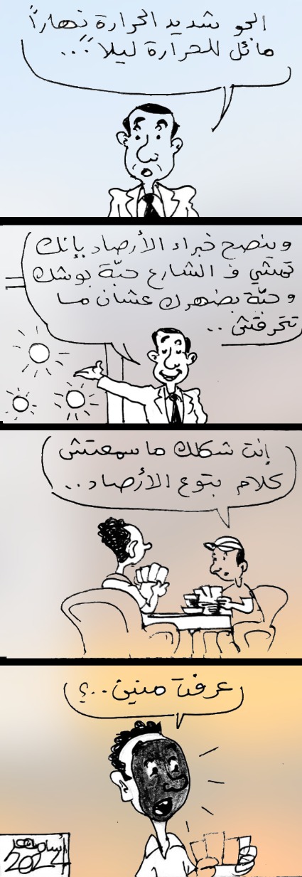 نصائح خبراء الأرصاد في كاريكاتير فيتو الأحد 07/يوليو/2024 - 02:57 م 7/7/2024 2:57:48 PM نصائح خبراء الأرصاد في كاريكاتير فيتو اسامة علي شارك طباعة 18 حجم الخط شارك طباعة خبراء الارصاد الأرصاد كاريكاتير فيتو كاريكاتير فيتو بوابة فيتو ساخرون