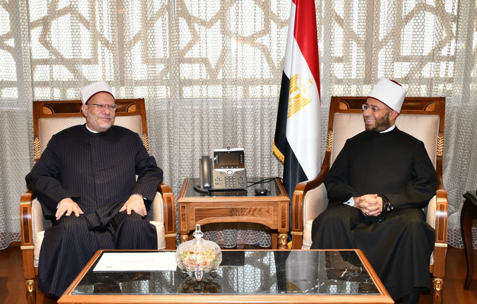 وزير الأوقاف يستقبل مفتي الجمهورية ونقيب الأشراف