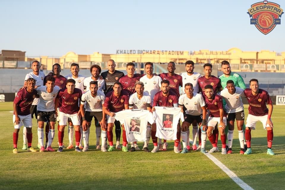 لاعبو الجونة وسيراميكا كليوباترا يحملون تيشرتات عليها صورة أحمد رفعت قبل انطلاق المباراة
