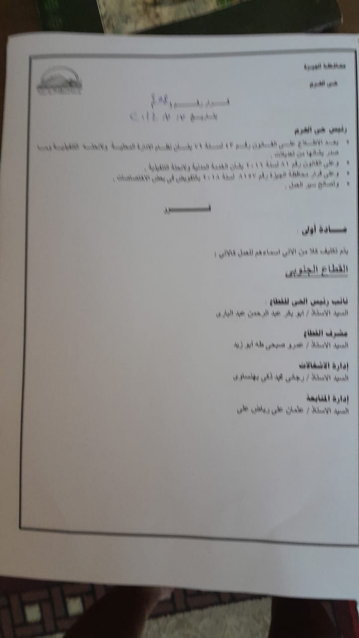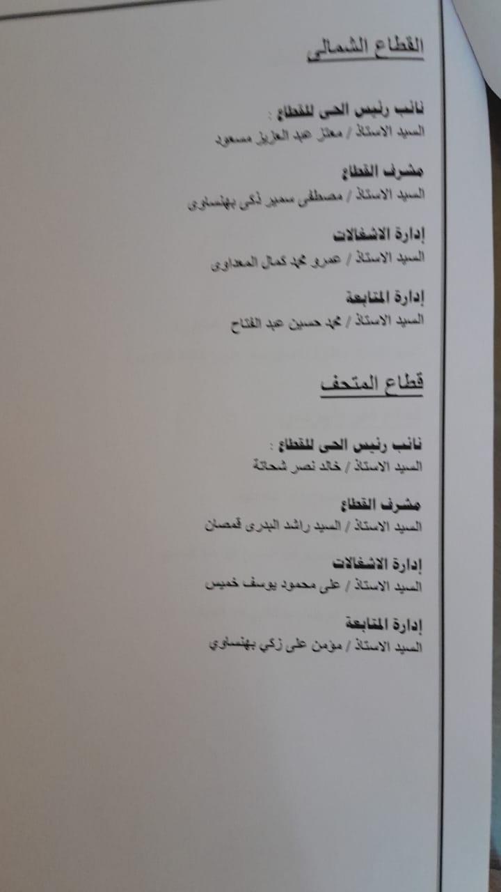 وأصدر المهندس طه عبد الصادق رئيس حي الهرم قرارا بتعديل وتغيير في جميع إدارات الحي الميدانية، وذلك فيما يأتي: