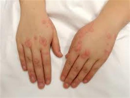 - الأكزيما، يمكن أن تكون بسبب أمراض الحساسية، التعرض للمواد المهيجة وتظهر في أي مكان بالجسم.
