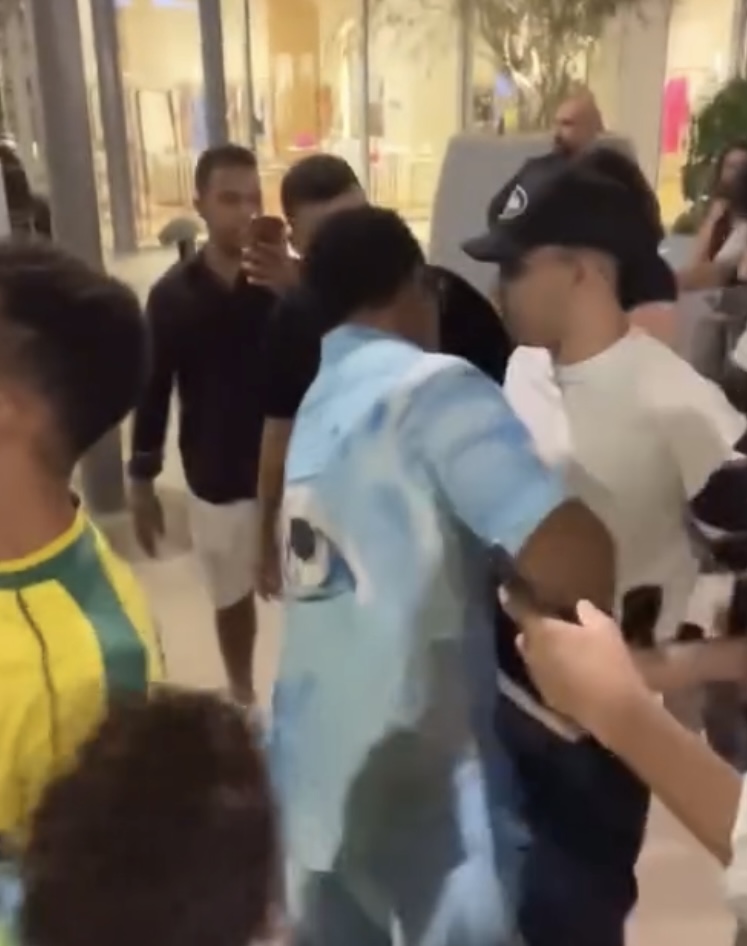 ويظهر فى الفيديو المتداول محاولة الشاب التقاط صور للفنان وهو ما أثار غضبه وجعله يتوجه إليه ويمسك بيده ويطلب منه إخراج هاتفه المحمول من جيبه، مرددا: “طلع الموبايل.. طلع الموبايل"، محاولا إخراج الهاتف من جيبه بالقوة، وهو ما جعل الشاب يرد عليه قائلا: “حاضر هاجيبه .. حاضر هاجيبه”.