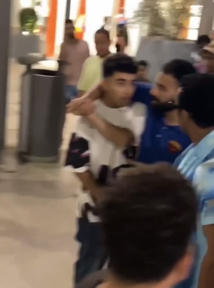 وظهر محمد رمضان في الفيديو المنتشر محاولا أخذ الموبايل بالقوة، وتوجيه صفعة لهذا الشاب، بينما حاول الشاب رد الصفعة لمحمد رمضان.