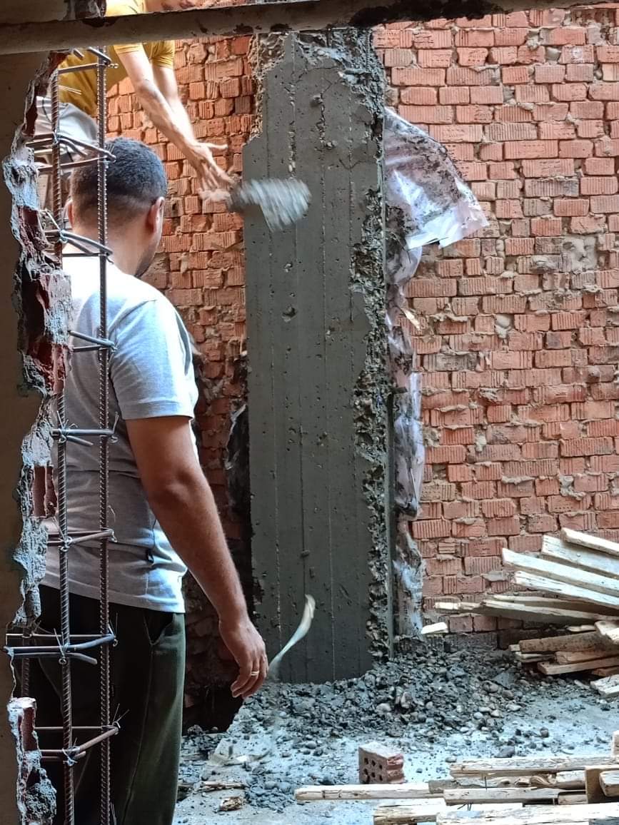 وتم ايقاف اعمال بناء مخالف بفك شدة خشبية لأعمدة خرسانية بدون ترخيص بقرية أتميدة .