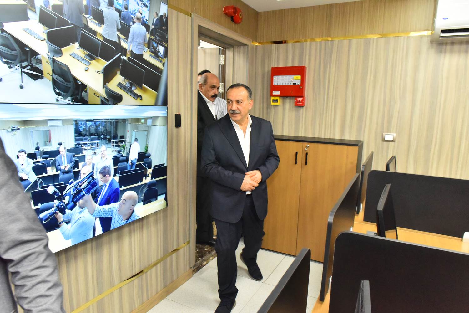 وتابع المحافظ عن طريق اتصال مرئي بالبث المباشر حملة لإزالة ورفع الاشغالات بنطاق حي شرق مدينة أسيوط وتم متابعة كافة الإجراءات والخطوات التي تم القيام بها كما تفقد قاعة المؤتمرات التي تم تطويرها حديثا وتزويدها بكافة الأجهزة الإلكترونية الحديثة من شاشات عرض ومنظومة صوت ووسائل اتصال لسهولة العمل وتفقد أيضا غرفة الأزمات الرئيسية وغرفة العمليات التي تتلقى الاخطارات والبلاغات وشكاوى المواطنين عبر الخطوط الساخنة على مدار اليوم.