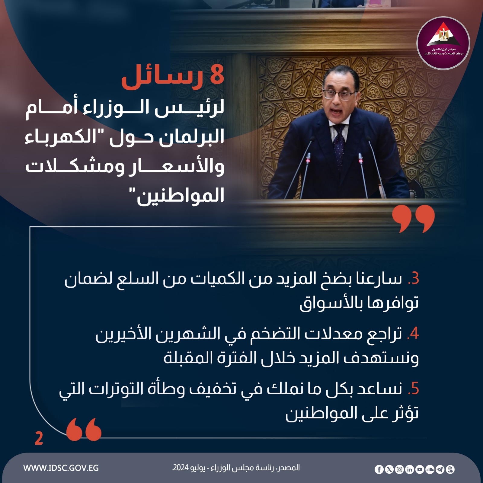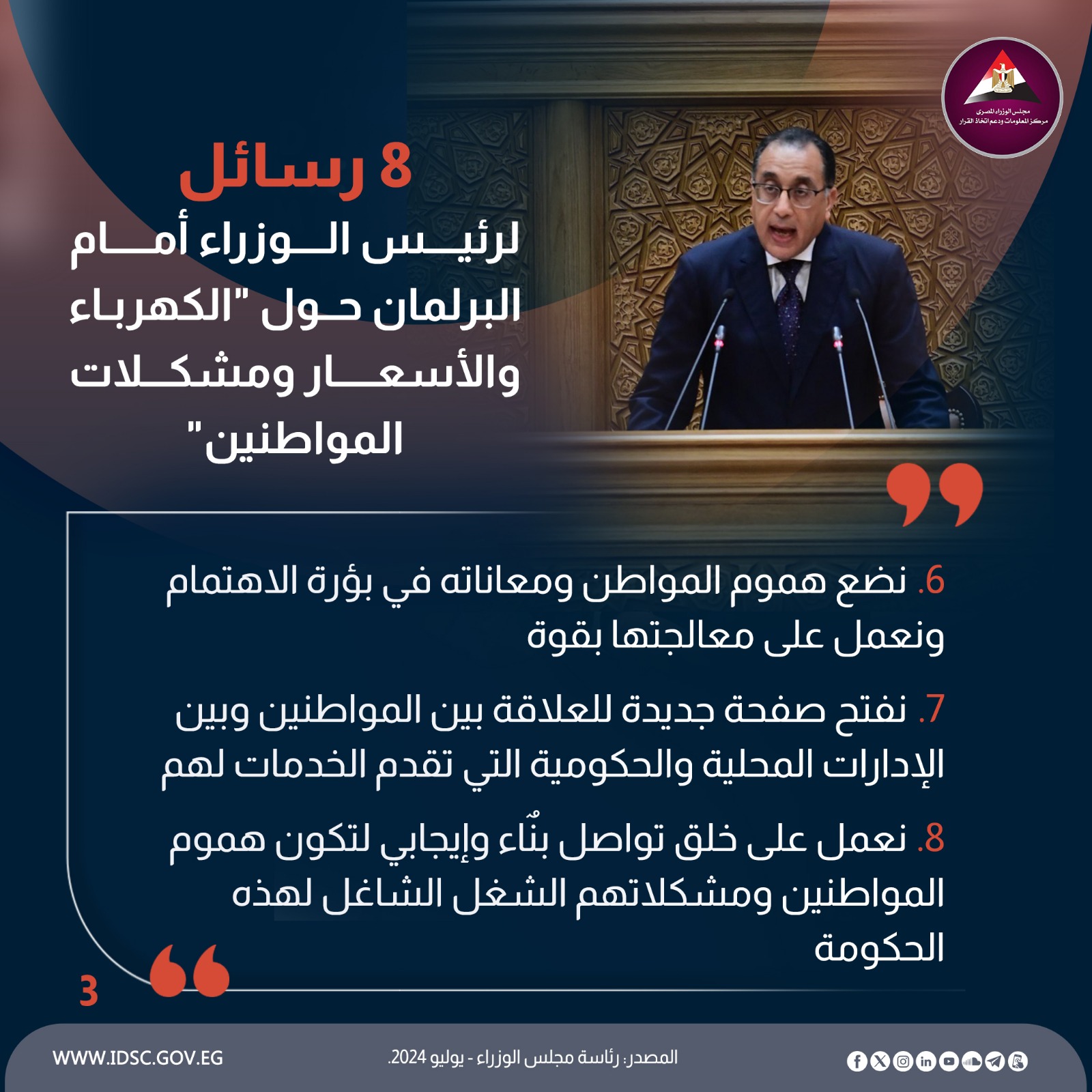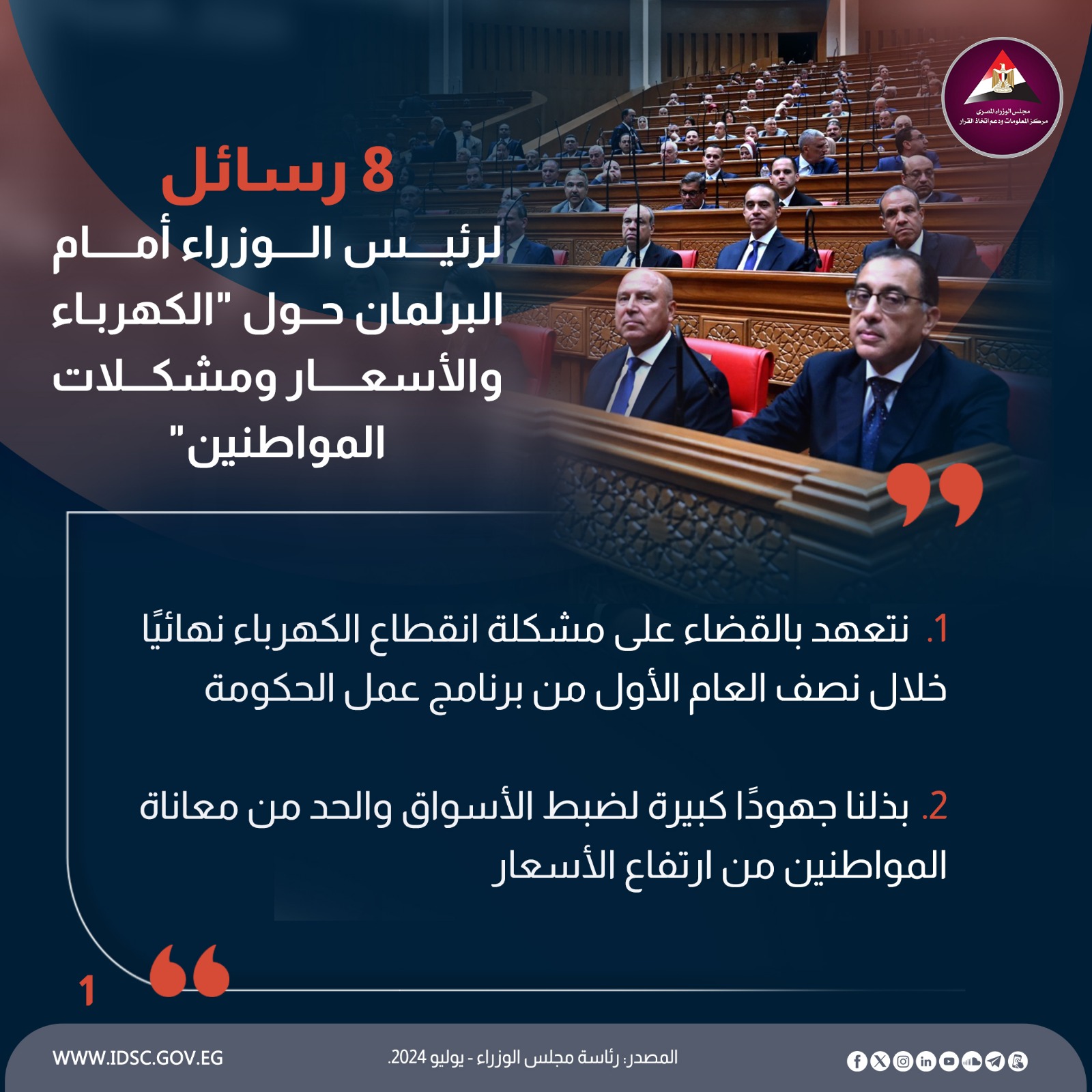 8 رسائل لرئيس الوزراء أمام البرلمان حول"الكهرباء والأسعار ومشكلات المواطنين"
