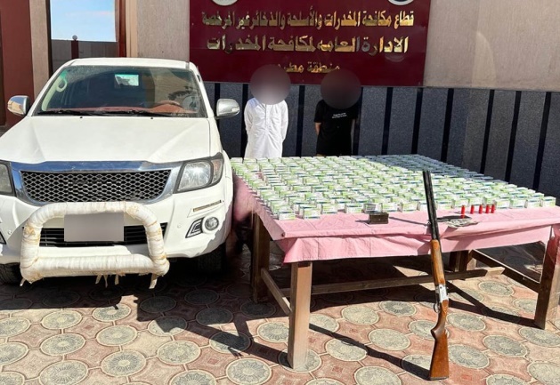 وفى مطروح؛ تم ضبط عنصرين إجراميين – لهما معلومات جنائية بدائرة قسم شرطة مطروح، وبحوزتهما 30 ألف قرص من عقار التامول المخدر وكمية من مخدر الحشيش، بندقية خرطوش وعدد من الطلقات.