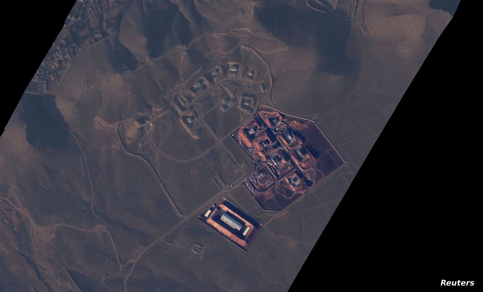 وأظهرت الصور، التي اطلعت عليها رويترز، أن العديد من المباني محاطة بسواتر ترابية كبيرة.