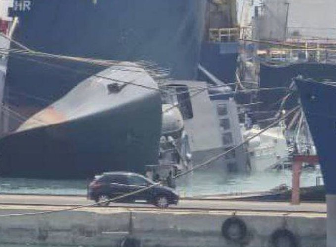 وقال تقرير لإذاعة وتلفزيون إيران: إن المدمرة سهند التي يجري إصلاحها في الرصيف فقدت توازنها بسبب تسرب المياه إلى الخزانات".