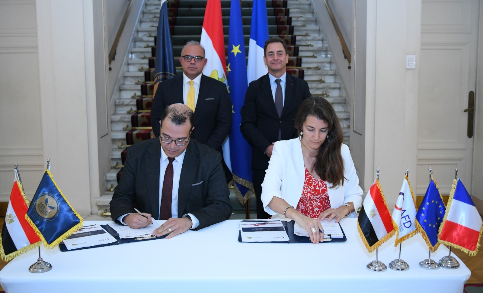 وشهد الدكتور محمد فريد رئيس الهيئة العامة للرقابة المالية، وإيريك شوفالييه، السفير الفرنسي بالقاهرة، مراسم حفل التوقيع بين الجانبين، بمقر السفارة الفرنسية بالقاهرة، وقع على مذكرة التفاهم من قبل الهيئة أحمد رشدي، المدير التنفيذي للمركز الإقليمي للتمويل المستدام، ومن جانب الوكالة الفرنسية للتنمية السيدة كليمنس فيدال، مديرة مكتب الوكالة الفرنسية للتنمية بالقاهرة.