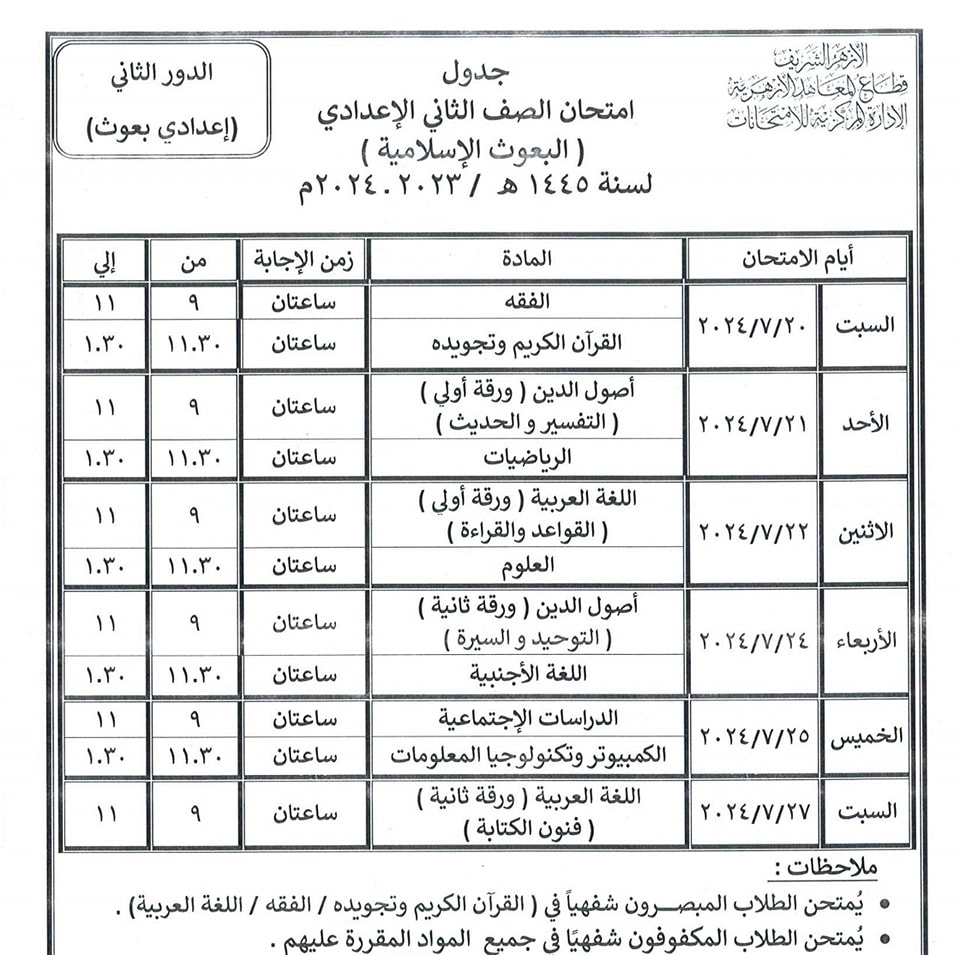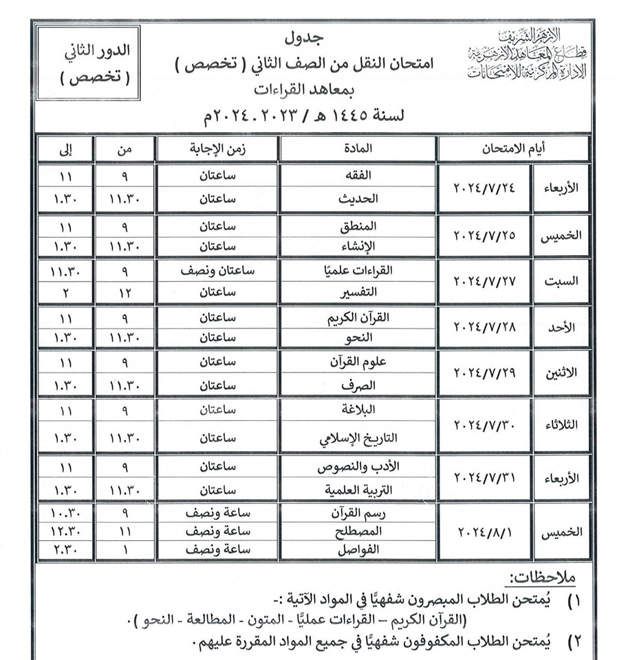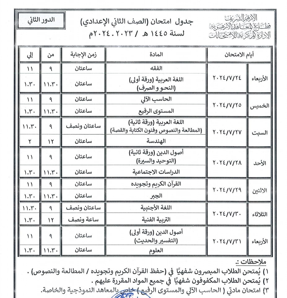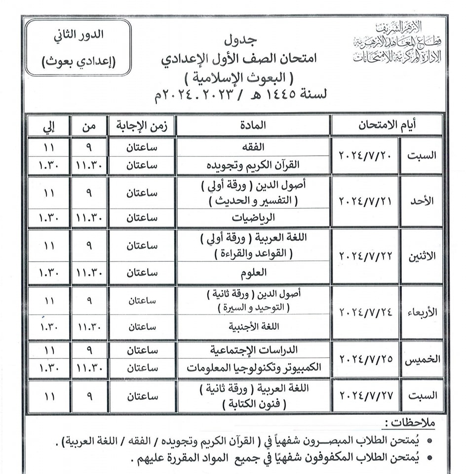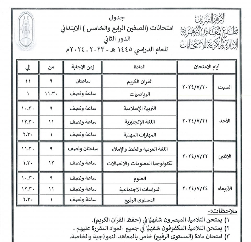 الأزهر يعلن جدول امتحانات الدور الثاني لصفوف النقل في جميع المراحل (صور)