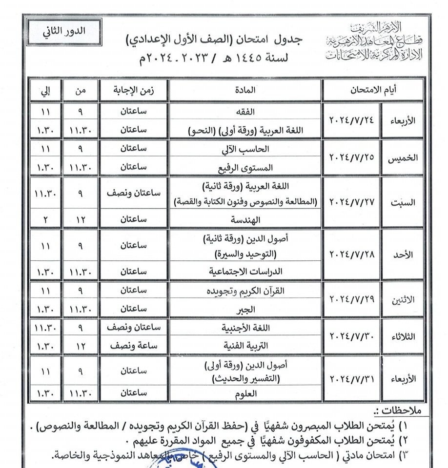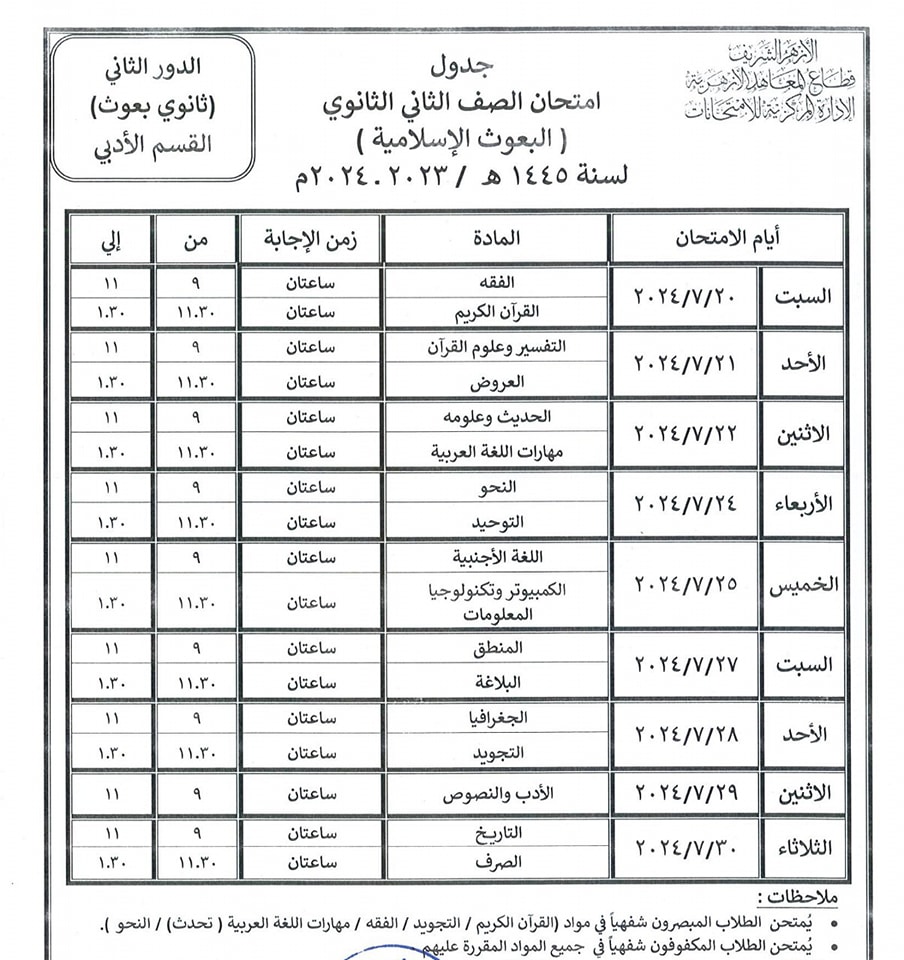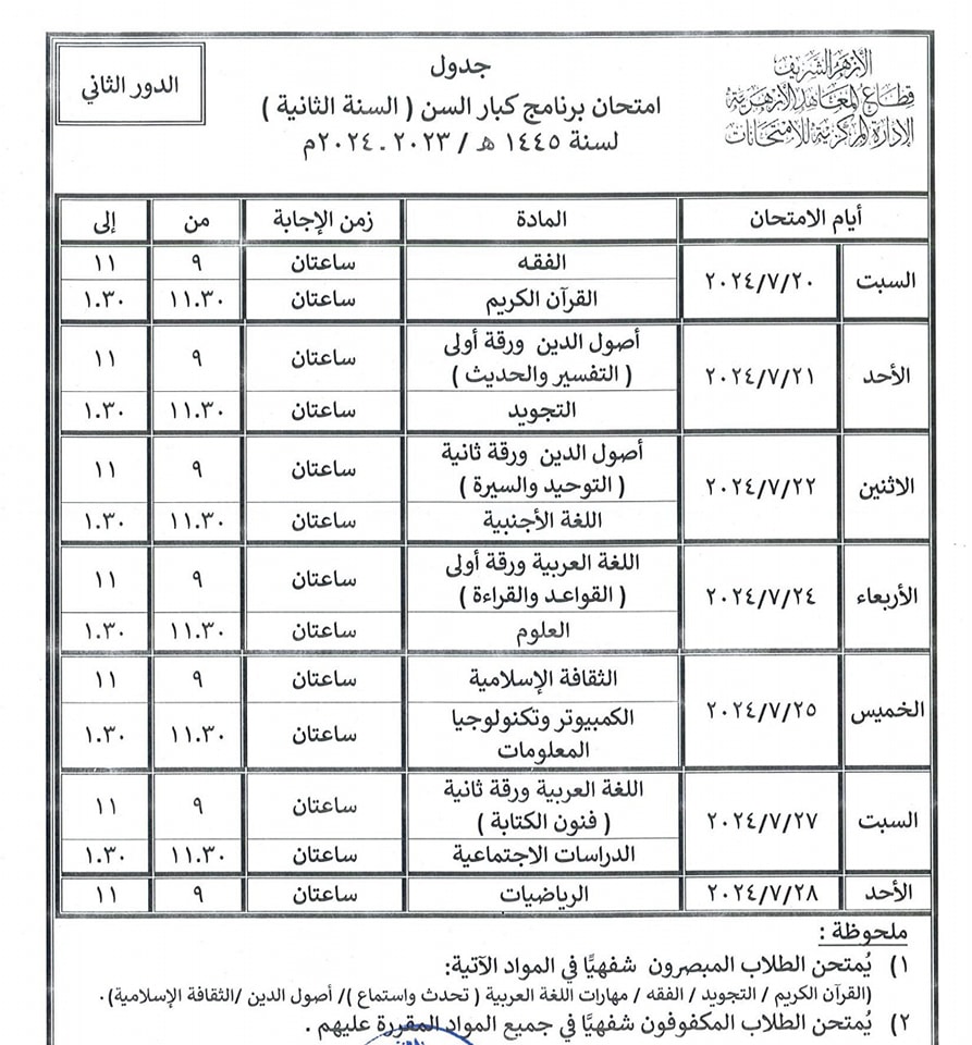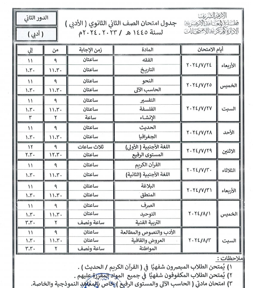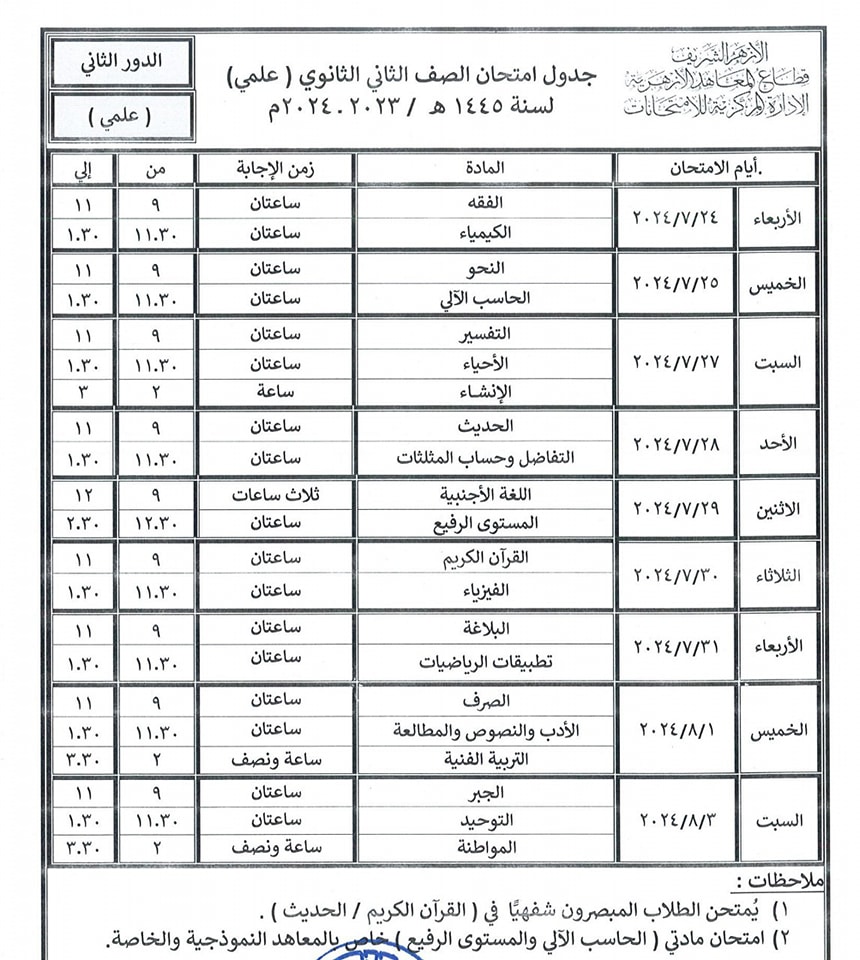 الأزهر يعلن جدول امتحانات الدور الثاني لصفوف النقل في جميع المراحل (صور)