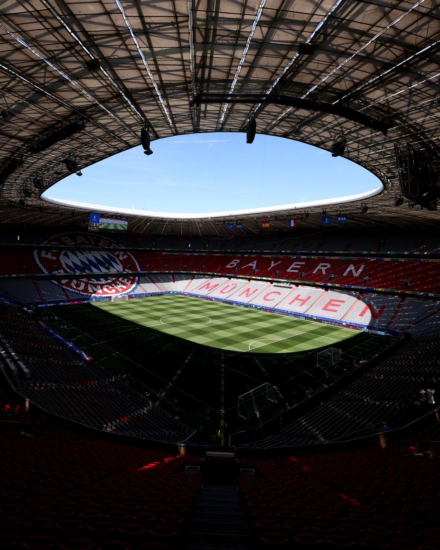 وظهر أليانز أرينا الذي يعد ملعبا لفريق بايرن ميونخ الألماني، في أتم جاهزية استعدادا للمباراة المرتقبة بين فرنسا وإسبانيا.