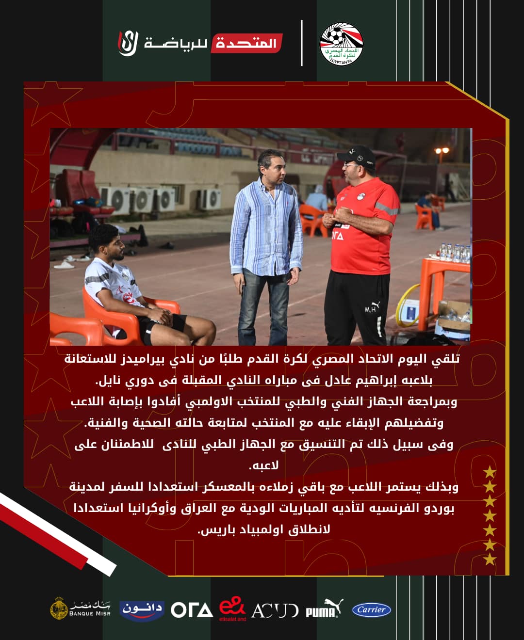 اتحاد الكرة يحسم موقف إبراهيم عادل من المنتخب الأولمبي ومباراة الأهلي