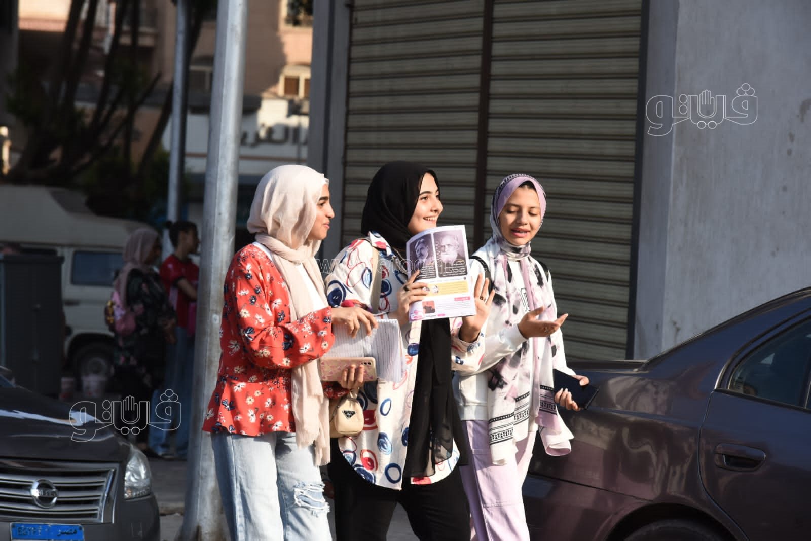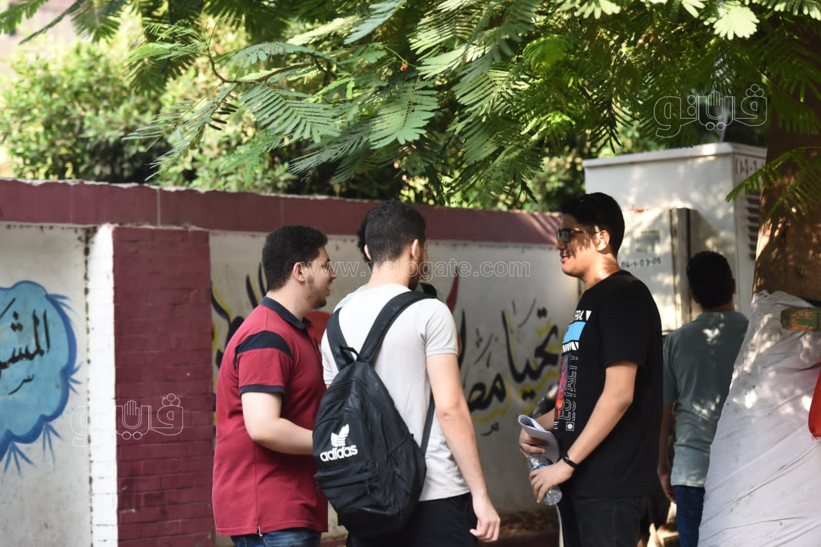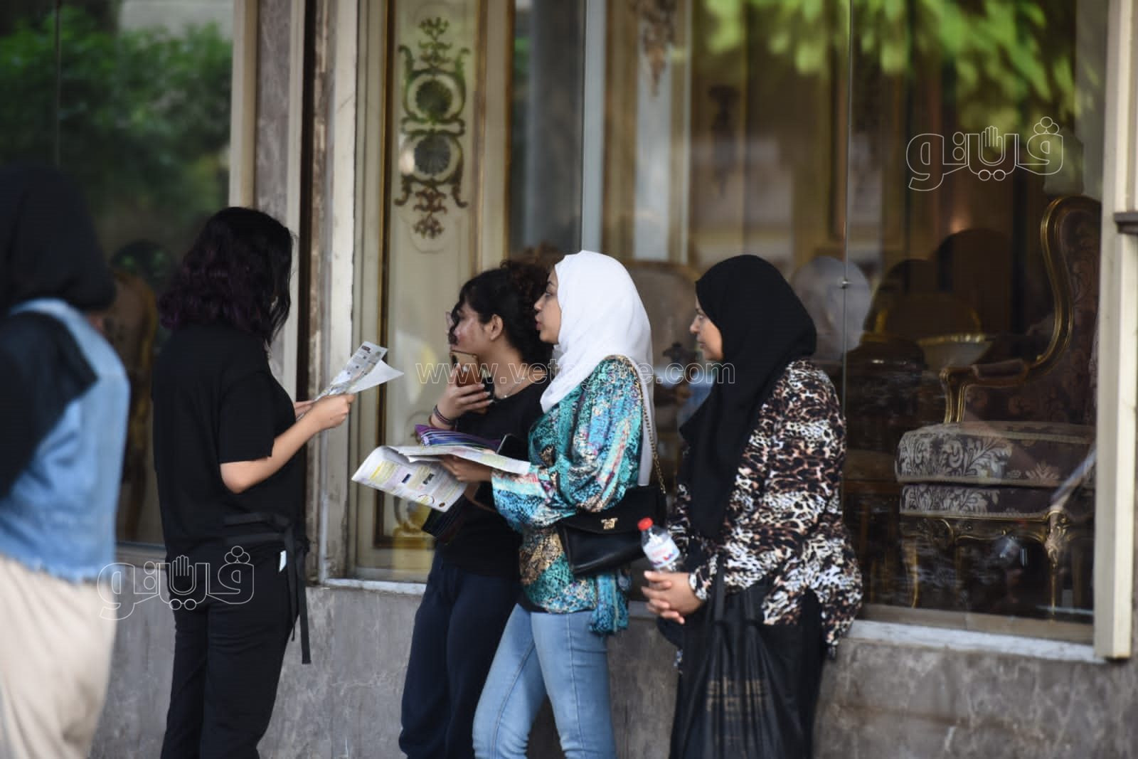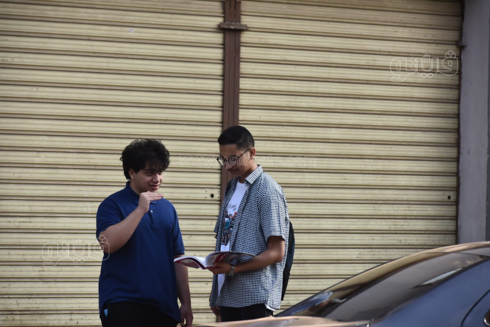 وحرص طلاب الثانوية العامة 2024 على المراجعة النهائية أمام المدرسة قبل الدخول للجنة لأداء امتحان مادتى الكيمياء والجغرافيا.