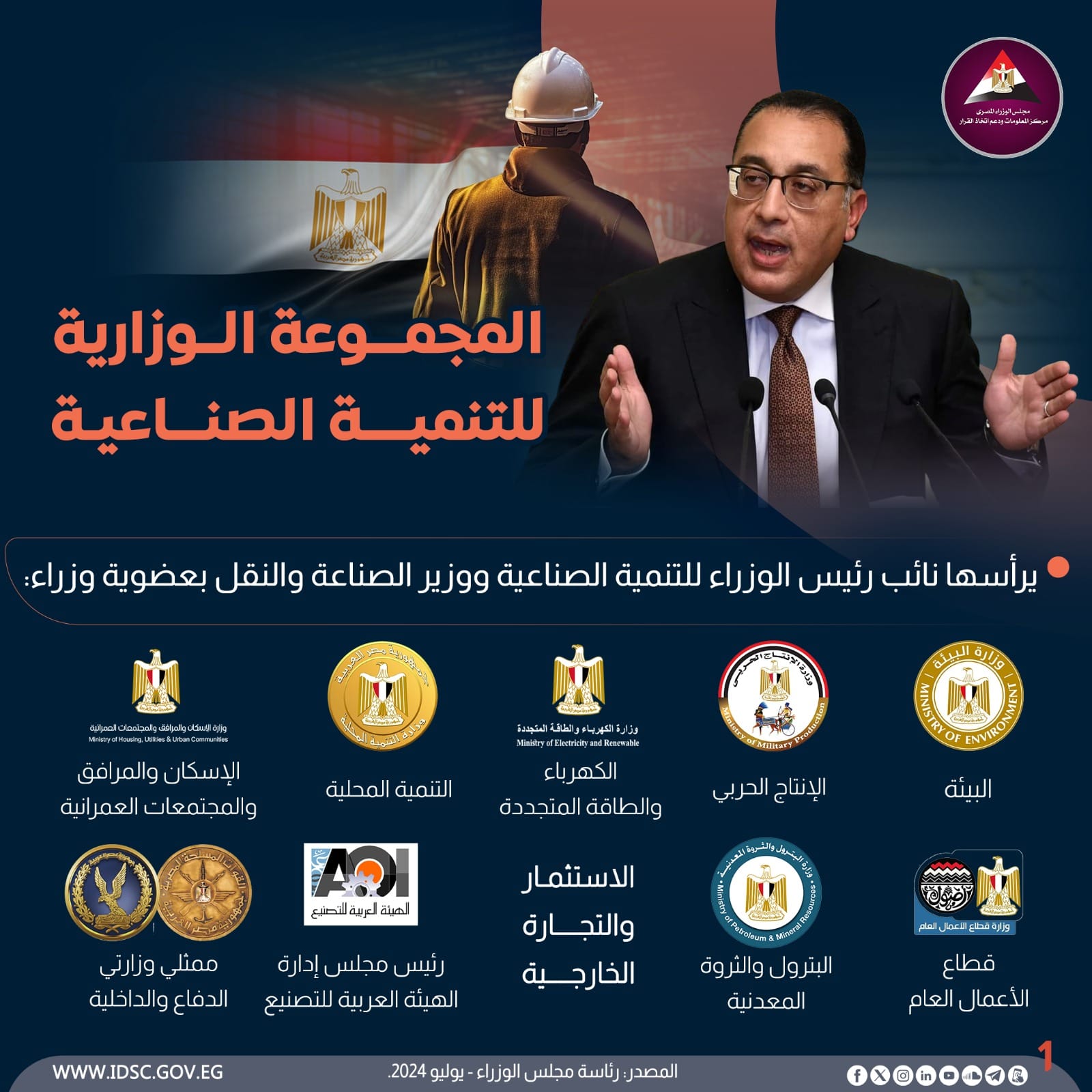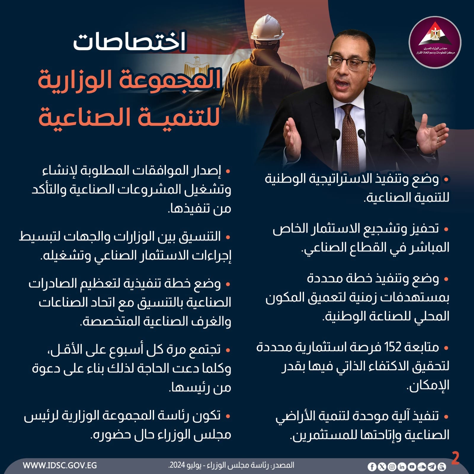 يرأسها نائب رئيس الوزراء، تشكيل واختصاصات المجموعة الوزارية للتنمية الصناعية (إنفوجراف)