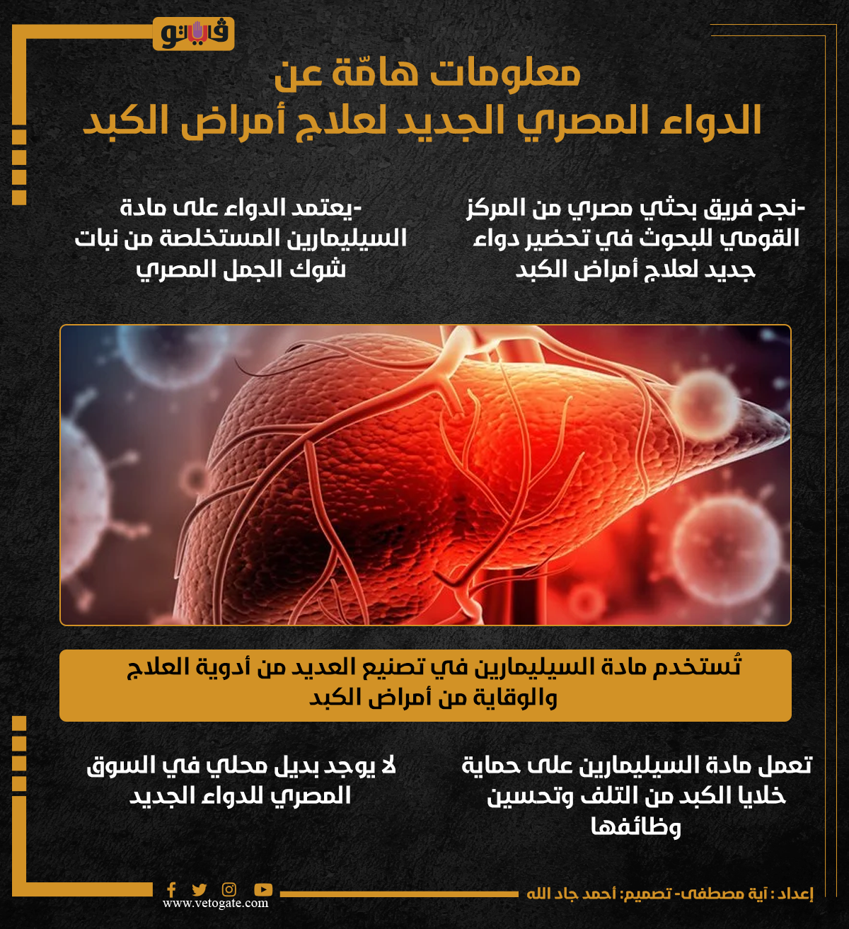 معلومات هامّة عن الدواء المصري الجديد لعلاج أمراض الكبد (انفوجراف) الأربعاء 10/يوليو/2024 - 02:57 م 7/10/2024 2:57:20 PM دواء مصر جديد لأمراض الكبد آية مصطفى شارك طباعة 18 حجم الخط شارك طباعة الدواء المصري الجديد الدواء المصري المركز القومي للبحوث الوقاية من امراض الكبد أمراض الكبد هيئة الدواء المصرية