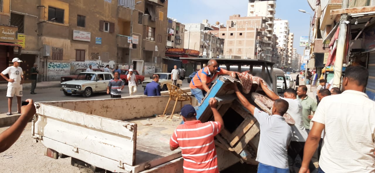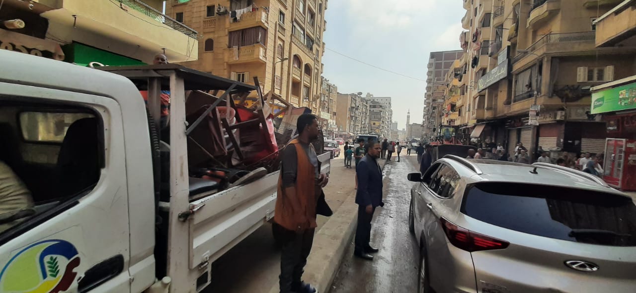 رفع 712 حالة اشغال ثابت ومتحرك بشارعين في دمنهور بالبحيرة