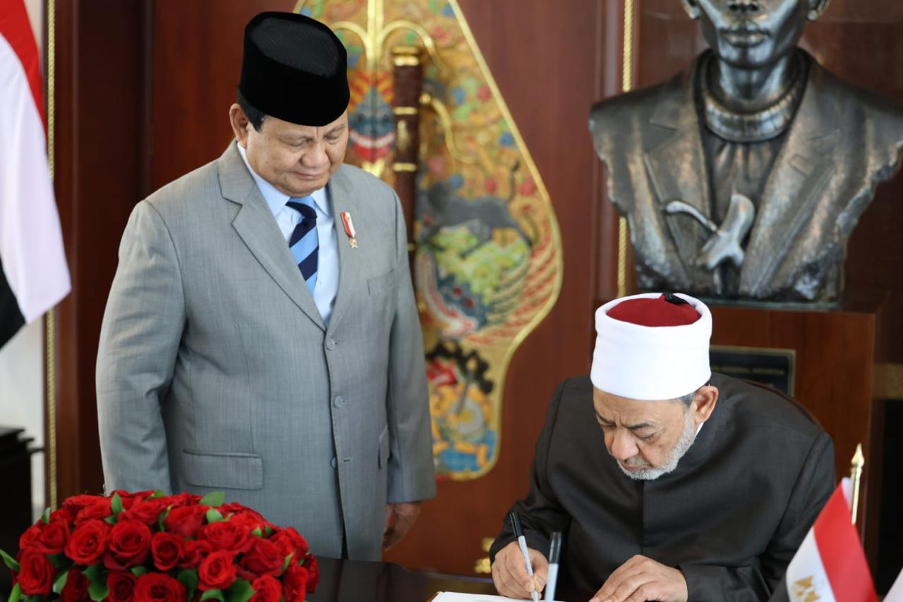 استقبل الجنرال برابوو سوبيانتو، وزير الدفاع الإندونيسي -الرئيس الإندونيسي المنتخب، فضيلة الإمام الأكبر الدكتور أحمد الطيب، شيخ الأزهر، رئيس مجلس حكماء المسلمين، لبحث التعاون المشترك بين الأزهر وإندونيسيا وسُبُل تكثيف الحشد الدولي لوقف العدوان على غزة.