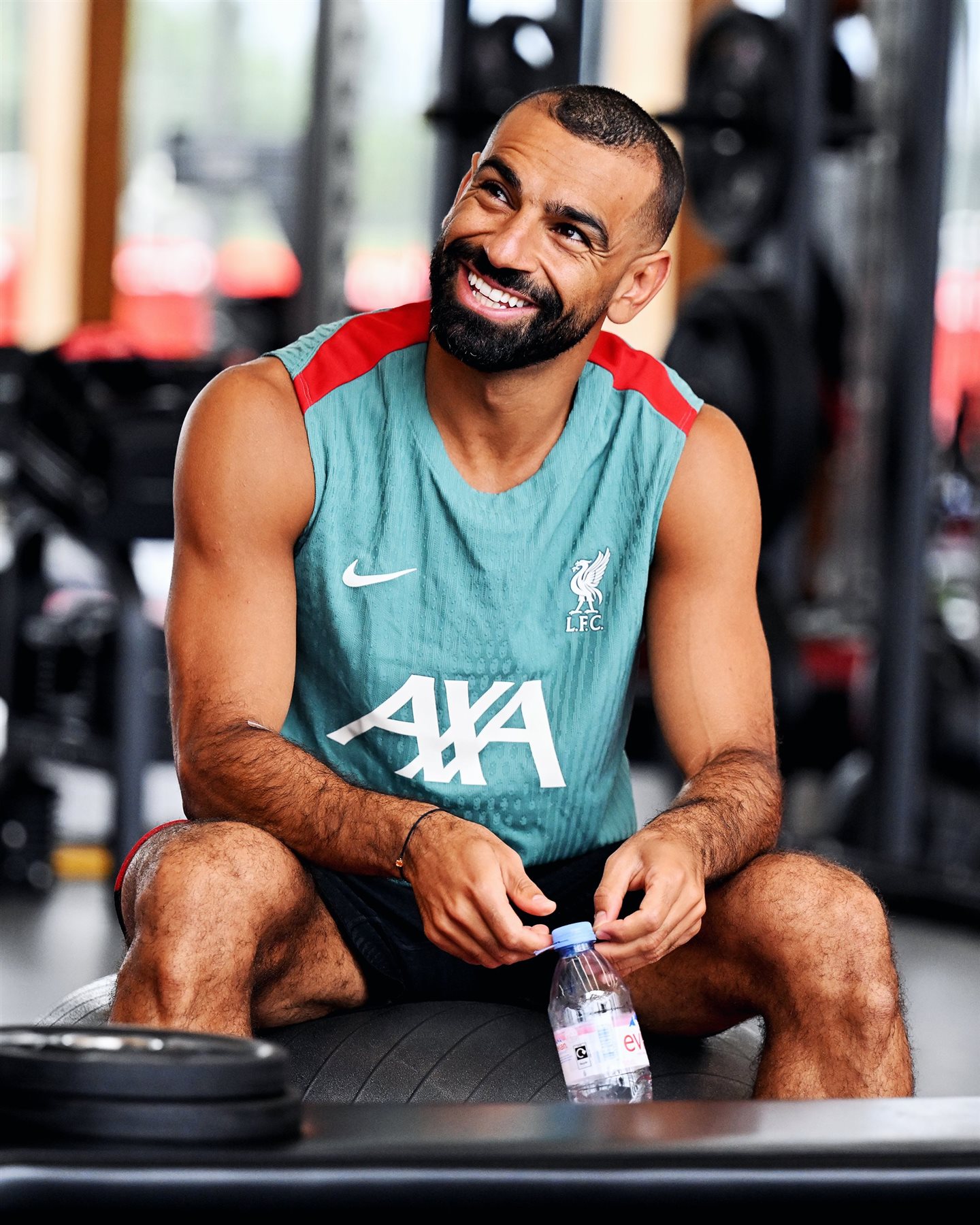 وظهر محمد صلاح بفورمة جسدية مميزة محتفظا بعضلاته وبلياقته البدنية رغم عودته من عطلة الصيف.