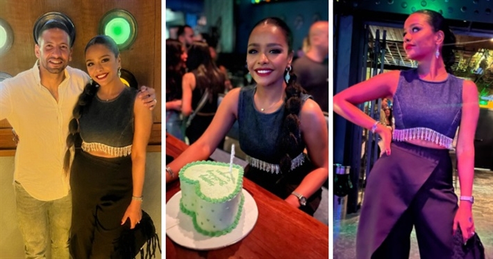 ظهرت أسماء أبو اليزيد وهي ترتدي Crop Top أسود اللون مزين بخرز في طرقه، وبنطلون ملحق من فوقع جزء من تنورة ملفوف بشكل مميز، مع تصفيف شعرها ضفيرة، وعلقت كاتبا: عيد ميلاد سعيد لي.