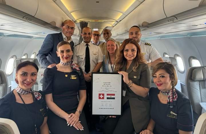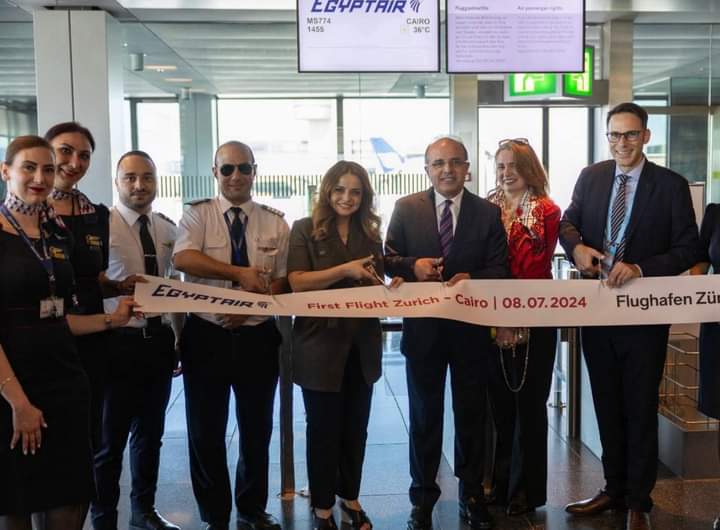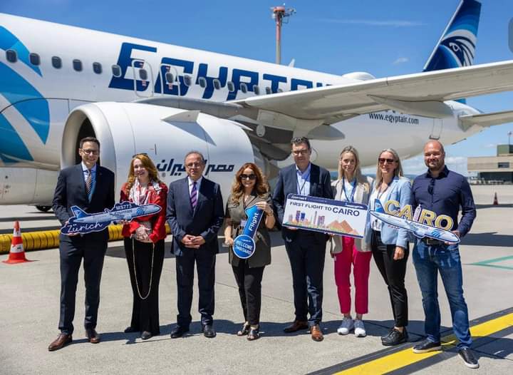 استقبال حافل لأولى رحلات مصر للطيران بمطار زيوريخ
