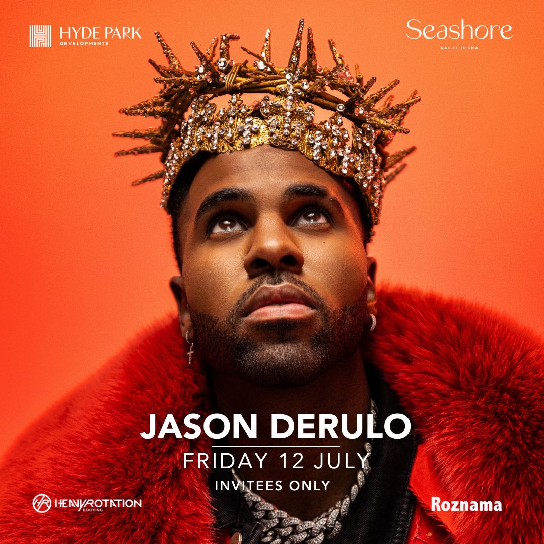 في حدث استثنائي، يحيي جيسون ديرولو حفلًا غنائيًّا ضخمًا في مصر وتحديدًا الساحل الشمالى غدًا الجمعة في seashore by hyde park برأس الحكمة.
