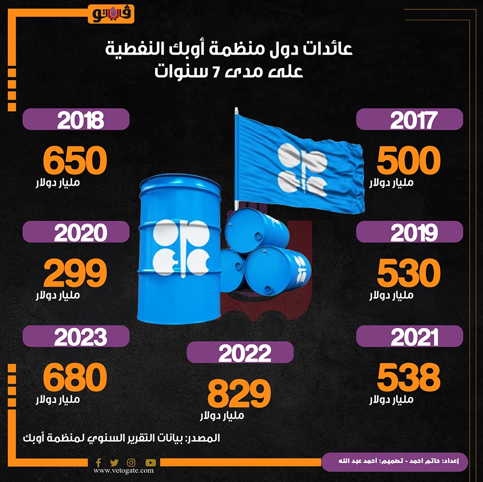 عائدات دول منظمة أوبك النفطية على مدى 7 سنوات (إنفوجراف) الأحد 25/أغسطس/2024 - 02:30 م 8/25/2024 2:30:54 PM منظمة أوبك، فيتو حاتم أحمد شارك طباعة 18 حجم الخط شارك طباعة أوبك منظمة اوبك حجم عائدات دول أوبك النفطية