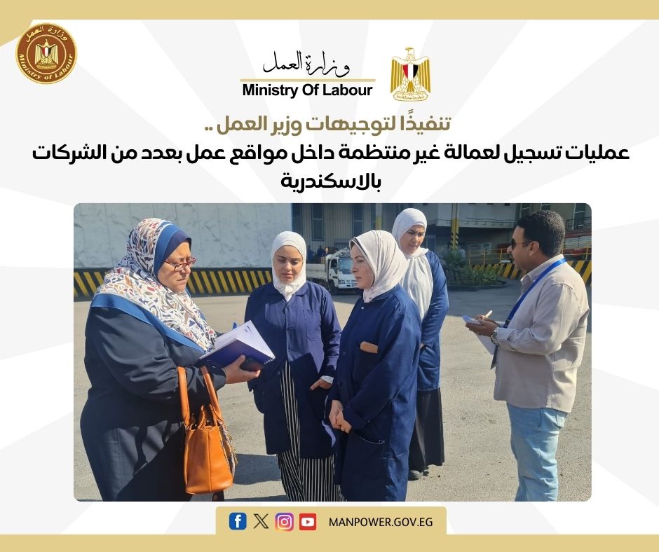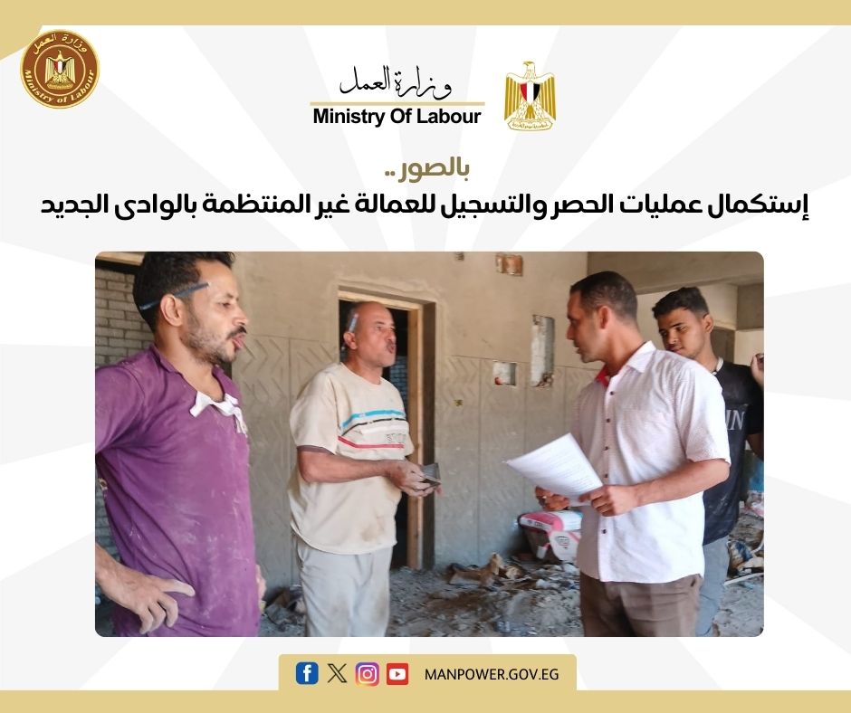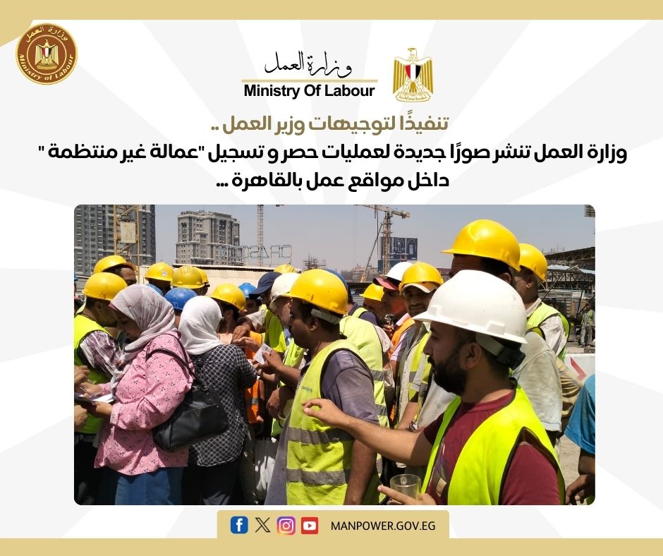 قامت مديريات العمل في محافظات القاهرة والوادي الجديد والإسكندرية بالتواجد داخل مواقع العمل لحصر وتسجيل العمالة غير المنظمة، وذلك بتوجيهات من وزير العمل محمد جبران.