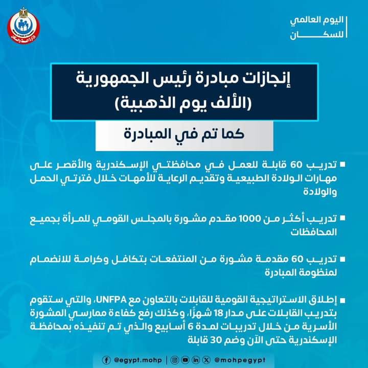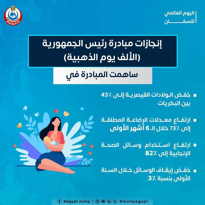 وأوضحت وزارة الصحة أن مبادرة الألف يوم الذهبية الأولى ساهمت في خفض معدلات الولادة القيصرية إلي 43% بين البكريات.