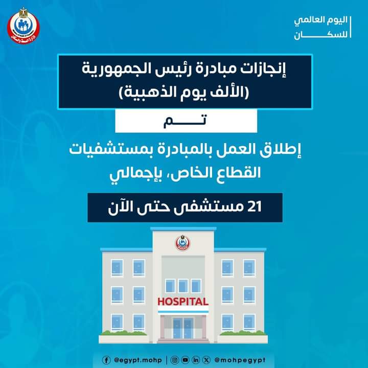 كشفت وزارة الصحة عن تطبيق مبادرة الألف يوم الذهبية الأولى في ٢١ مستشفى من مستشفيات القطاع الخاص.