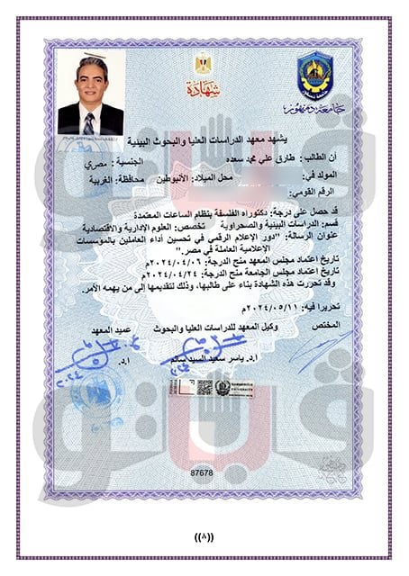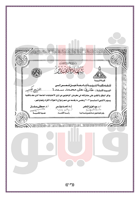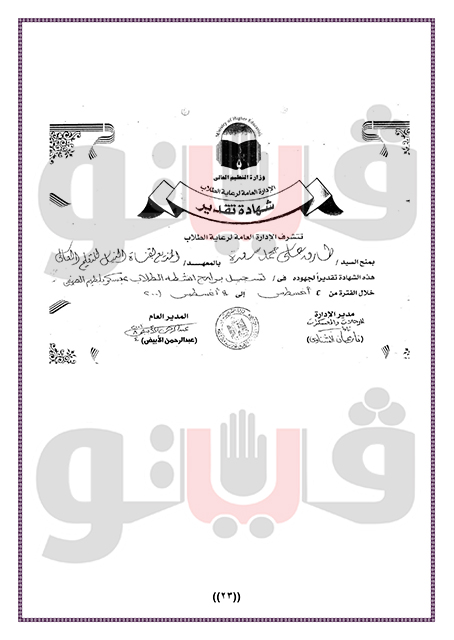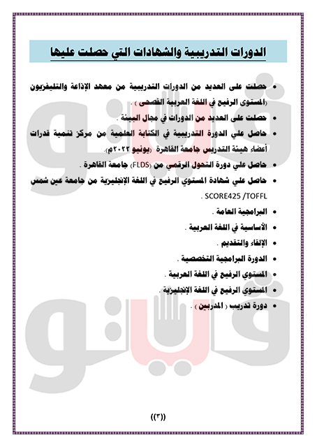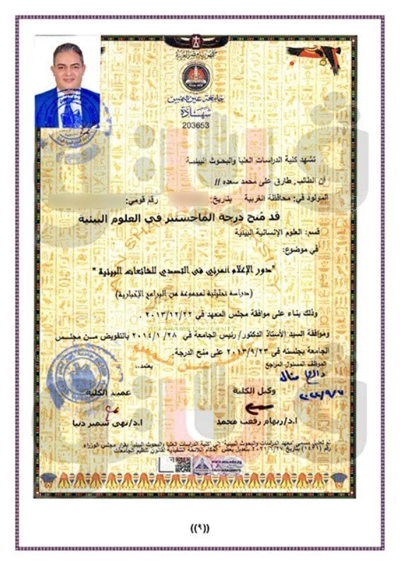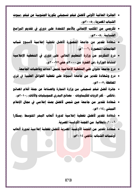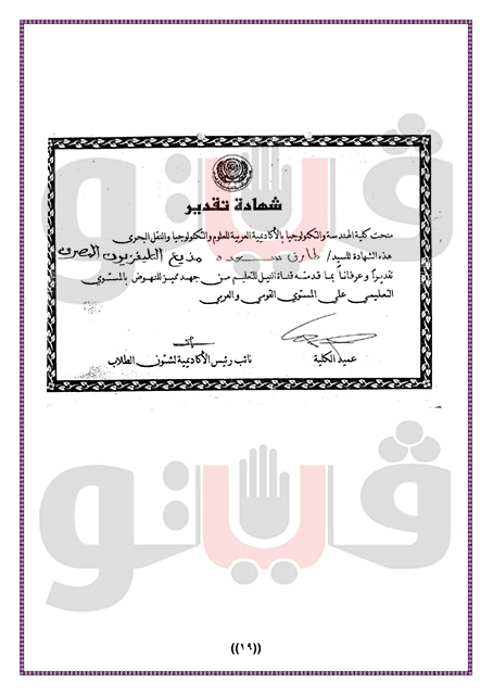 واختتم “سعدة” سيرته الذاتية بعرض صور ضوئية للشهادات الحاصل عليها.