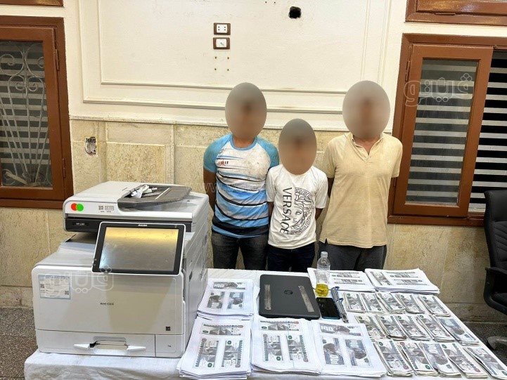 وعقب تقنين الإجراءات تم ضبطهم، وبحوزتهم (ماكينة طباعة – الأدوات المستخدمة فى التقليد – مبلغ مالى يشتبه فى كونه "مقلد" – 2 سلاح أبيض – جهاز "لاب توب"، "هاتف محمول" بفحصهما فنيًا تبين إحتوائهما على دلائل تؤكد نشاطهم الإجرامى).
