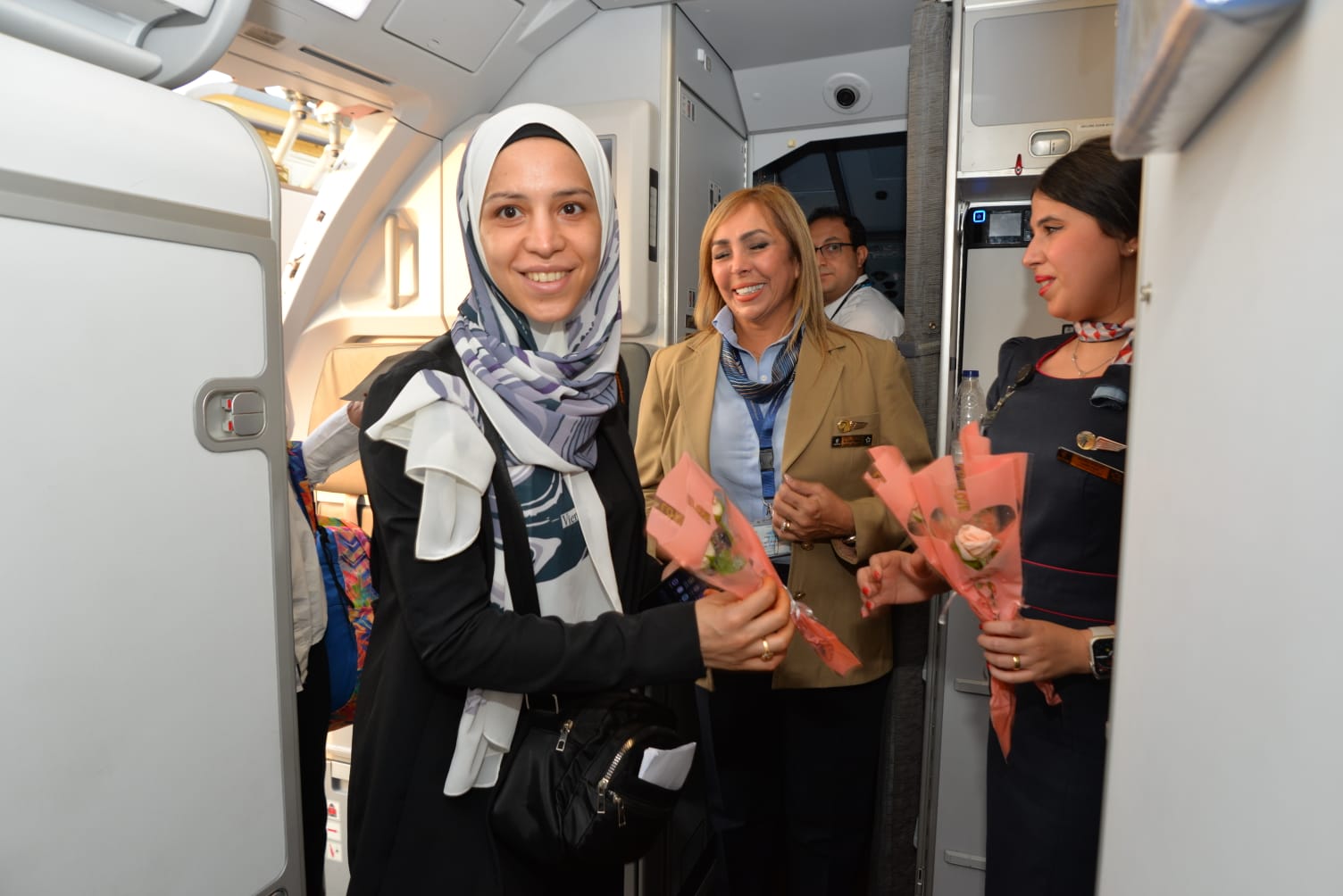 واحتفلت مصر للطيران مع ركاب الرحلة الأولى بمطار القاهرة بالورود والهدايا التذكارية فى جو يسوده البهجة والسرور.