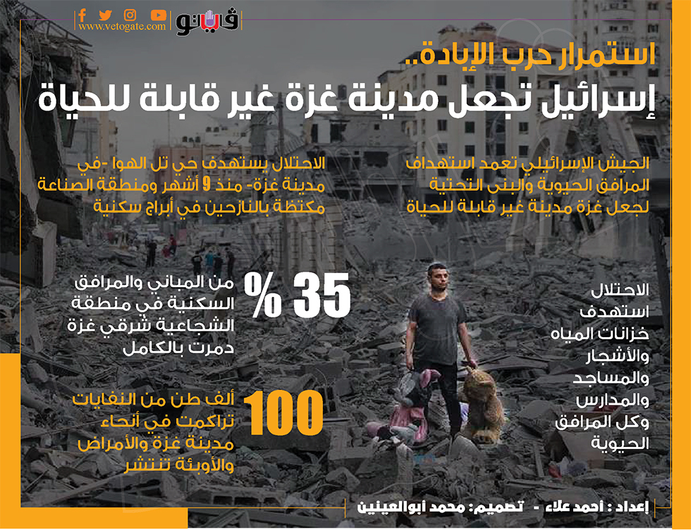 استمرار حرب الإبادة.. إسرائيل تجعل مدينة غزة غير قابلة للحياة (إنفوجراف) الجمعة 12/يوليو/2024 - 06:00 م 7/12/2024 6:00:46 PM غزة، فيتو احمد علاء شارك طباعة 18 حجم الخط شارك طباعة إسرائيل الجيش الإسرائيلي غزة مدينة غزة الاحتلال مدينة غزة- قطاع غزة