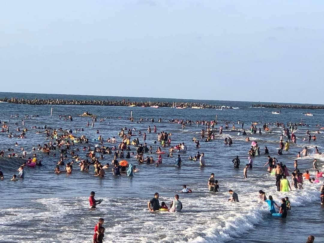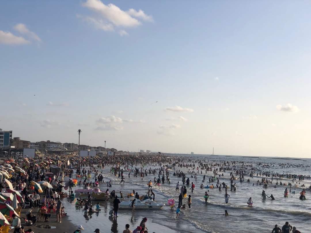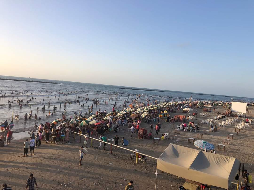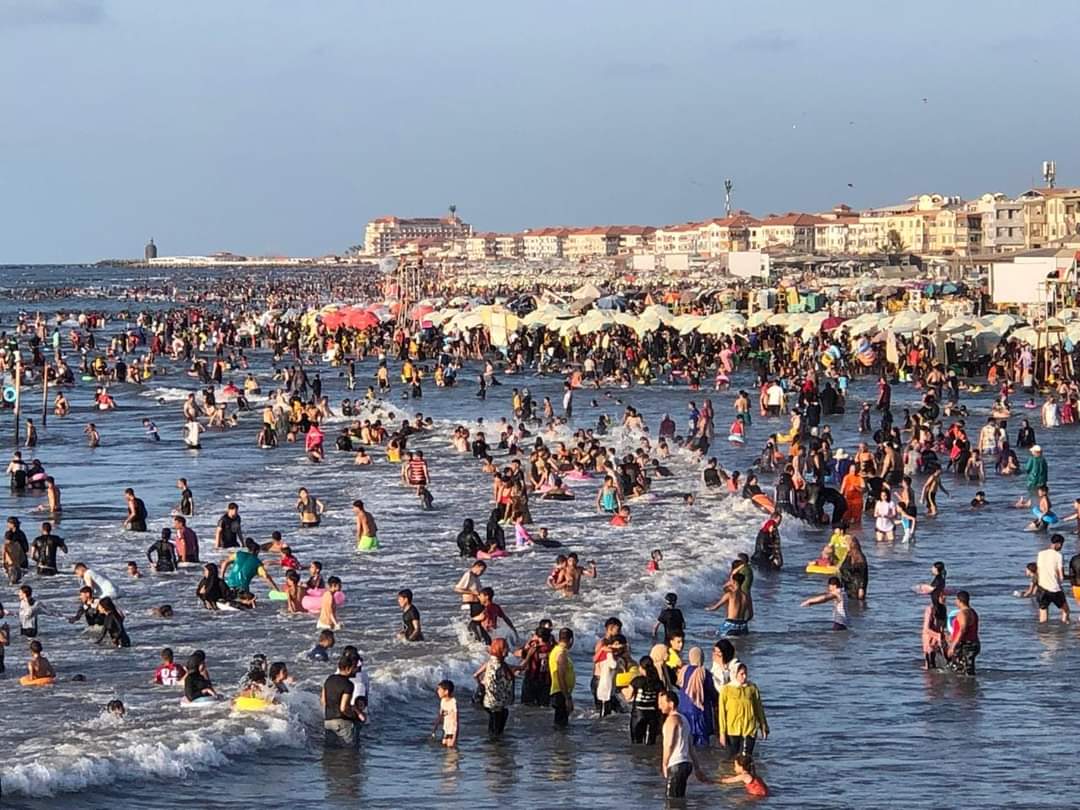 هربا من ارتفاع درجة حرارة الجو، إقبال كبير على شواطئ رأس البر (صور)