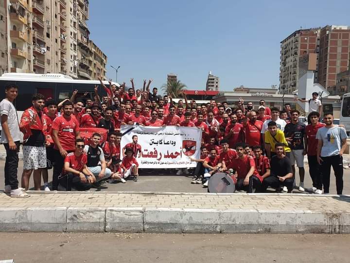 ورفعت جماهير الأهلي لافتة مكتوب عليها “وداعا أحمد رفعت”.