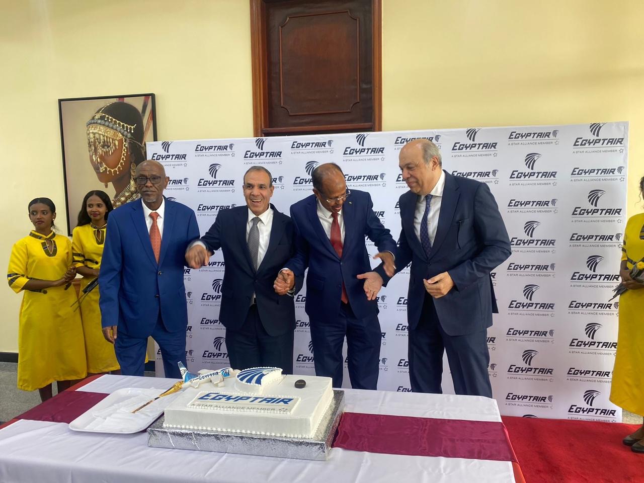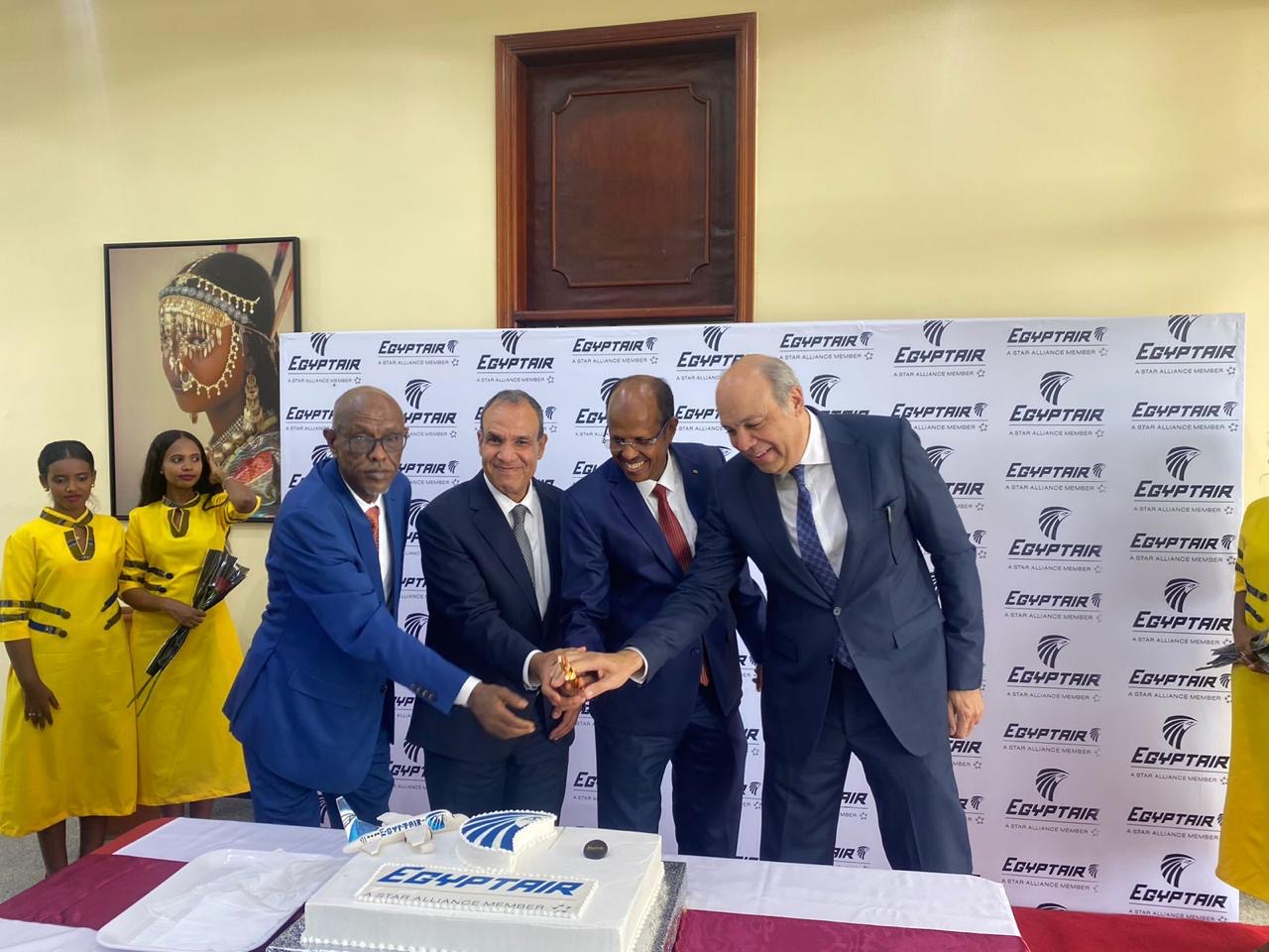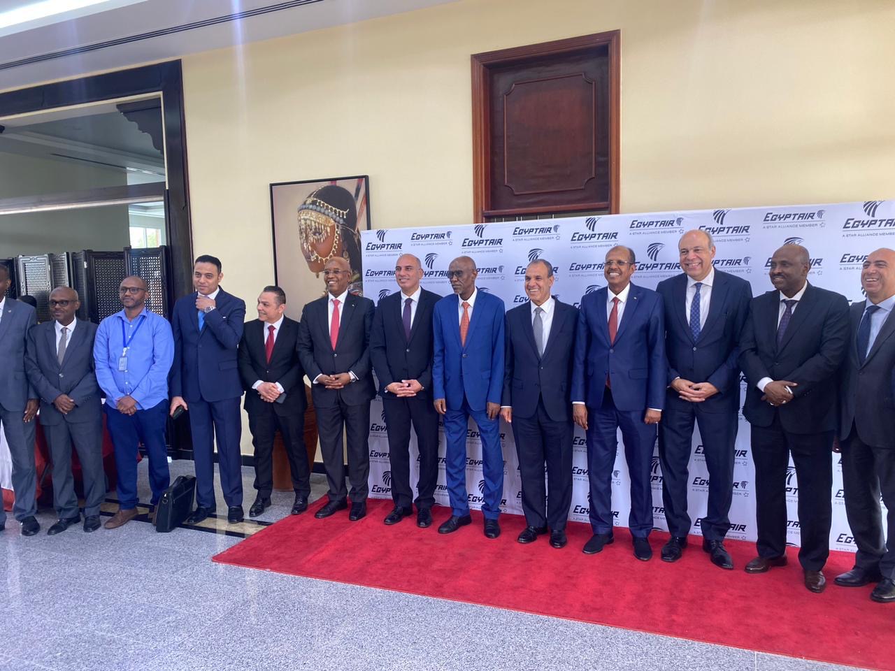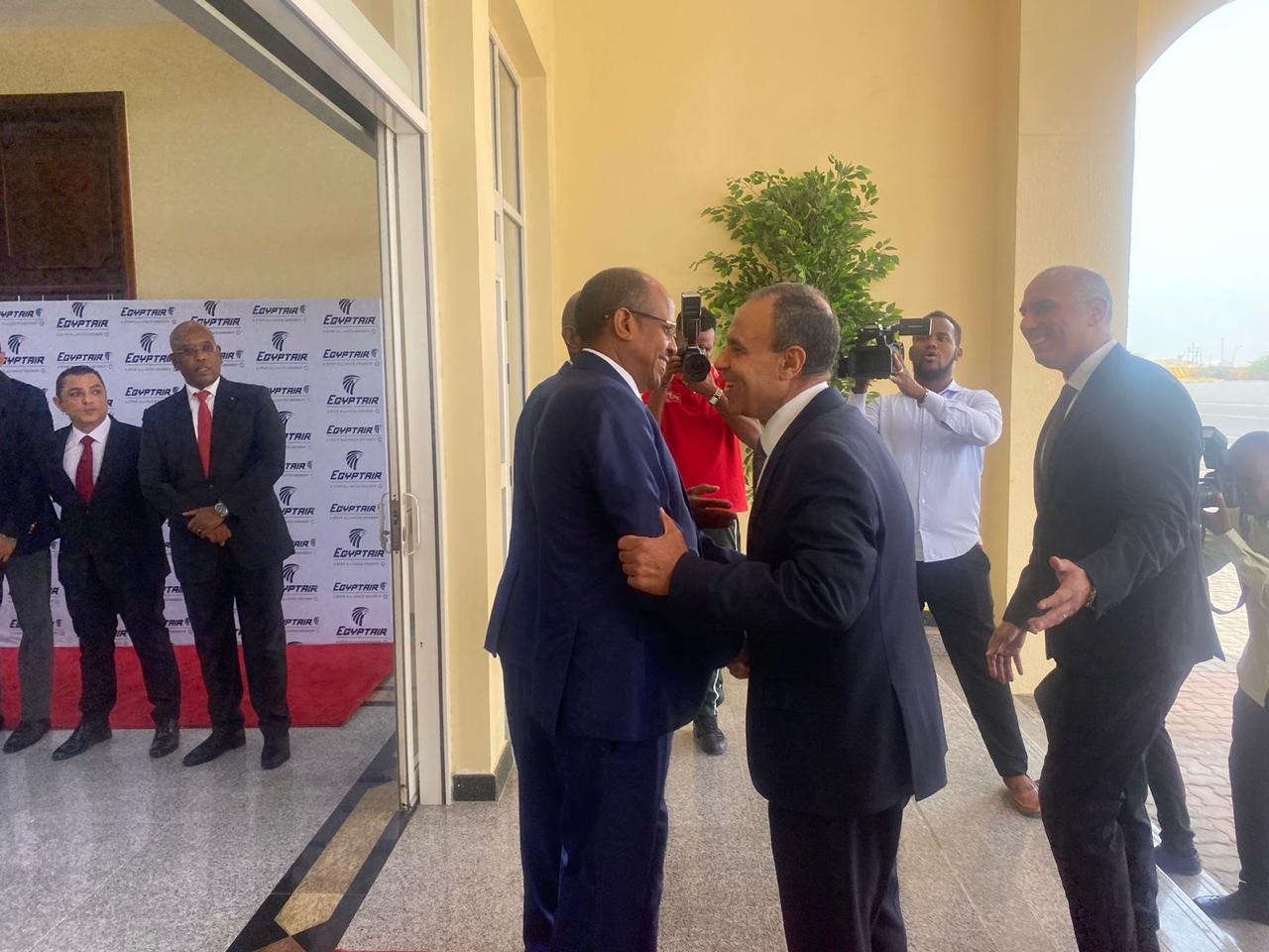 وهذا في إطار زيارة الوزير عبد العاطي التي قام بها، اليوم، إلى دولتي جيبوتي والصومال على أولى رحلات الناقل الوطني شركة مصر للطيران لتدشين خط الطيران المباشر بين الدول الثلاث.