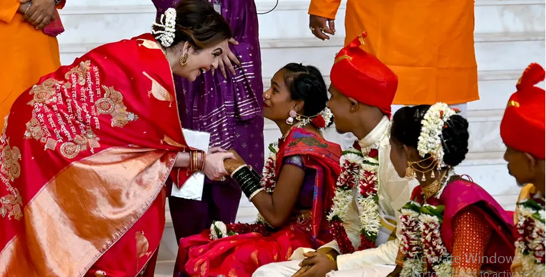 في الثاني من يوليو، أقام الزوجان حفل زفاف جماعيا، يعرف باسم "ساموه فيفاه"، في بلدة بالغار، على بعد حوالي 70 ميلًا من مومباي، وقد تمت دعوة أكثر من 50 من الأزواج لتلقي الهدايا، بدءا من الحلي الذهبية إلى البقالة لمدة عام.