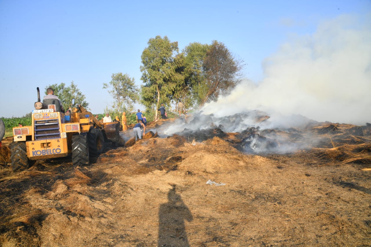 خسائر بـ 2 مليون جنيه، السيطرة على حريق التهم شونة كتان في الغربية (صور)