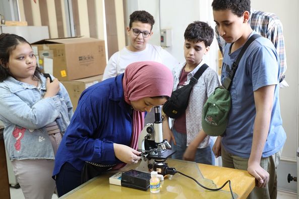 وتخلل الصالون تجربة عملية مميزة للأطفال، حيث قاموا بزيارة معمل قسم التغذية وعلوم الأطعمة، وأشرفت الدكتورة أسماء على تجربة عملية باستخدام الميكروسكوب للتعرف على الميكروبات وأشكال البكتيريا المختلفة، مما أتاح للطلاب ربط المعلومات النظرية بالتطبيق العملي بشكل فعّال.