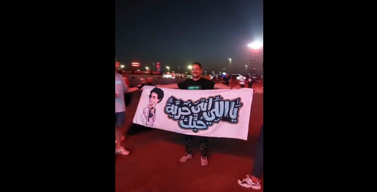 وينتظر الجمهور صعود الكينج محمد منير لانطلاق حفله بالعلمين الجديدة بـ لافتات تحمل أسامي أغانيه ومن أبرزها أغنية “ياللي انتي حبك حرية”.