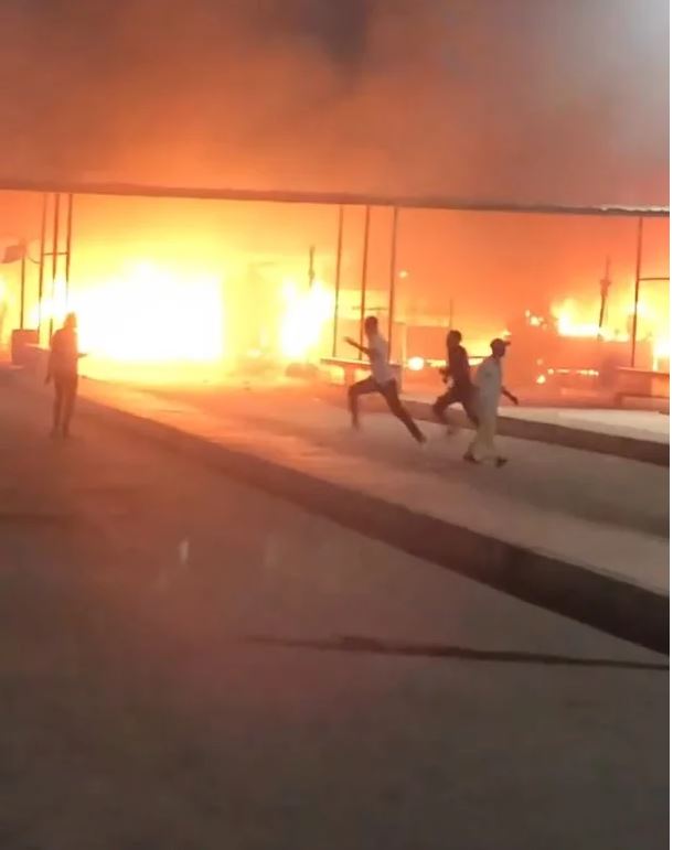 حريق هائل يلتهم عددا من المحال بموقف السلام، شاهد لحظة اشتعال النيران وفرار المواطنين