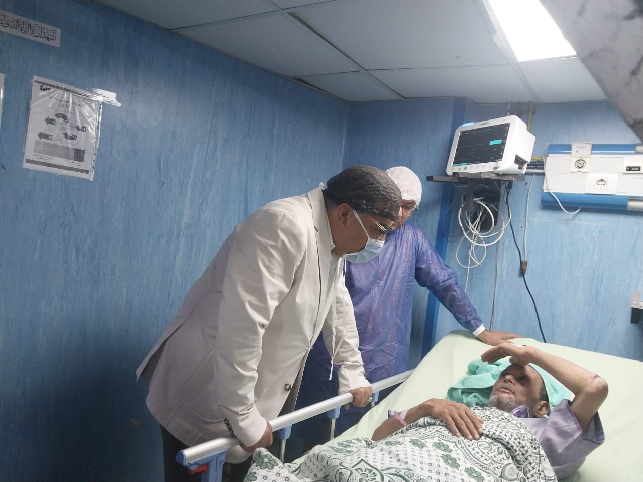 ووجه اللواء " مرزوق " بسرعة توفير جهاز طبي منزلي لأحد المرضي بالعنايه المركزه يعاني من فشل رئوي من أجل علاجه بالمنزل بديل مشقة مجيئة الي المستشفي ورفع المعاناة عنه من خلال التنسيق بين مديرية الصحه والتضامن الاجتماعي والمجتمع المدني.