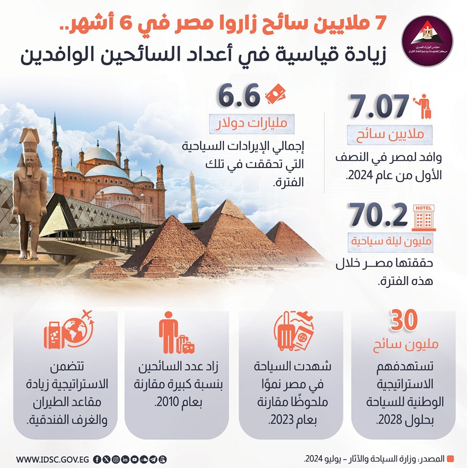 7 ملايين سائح زاروا مصر خلال النصف الأول من 2024 (إنفوجراف)