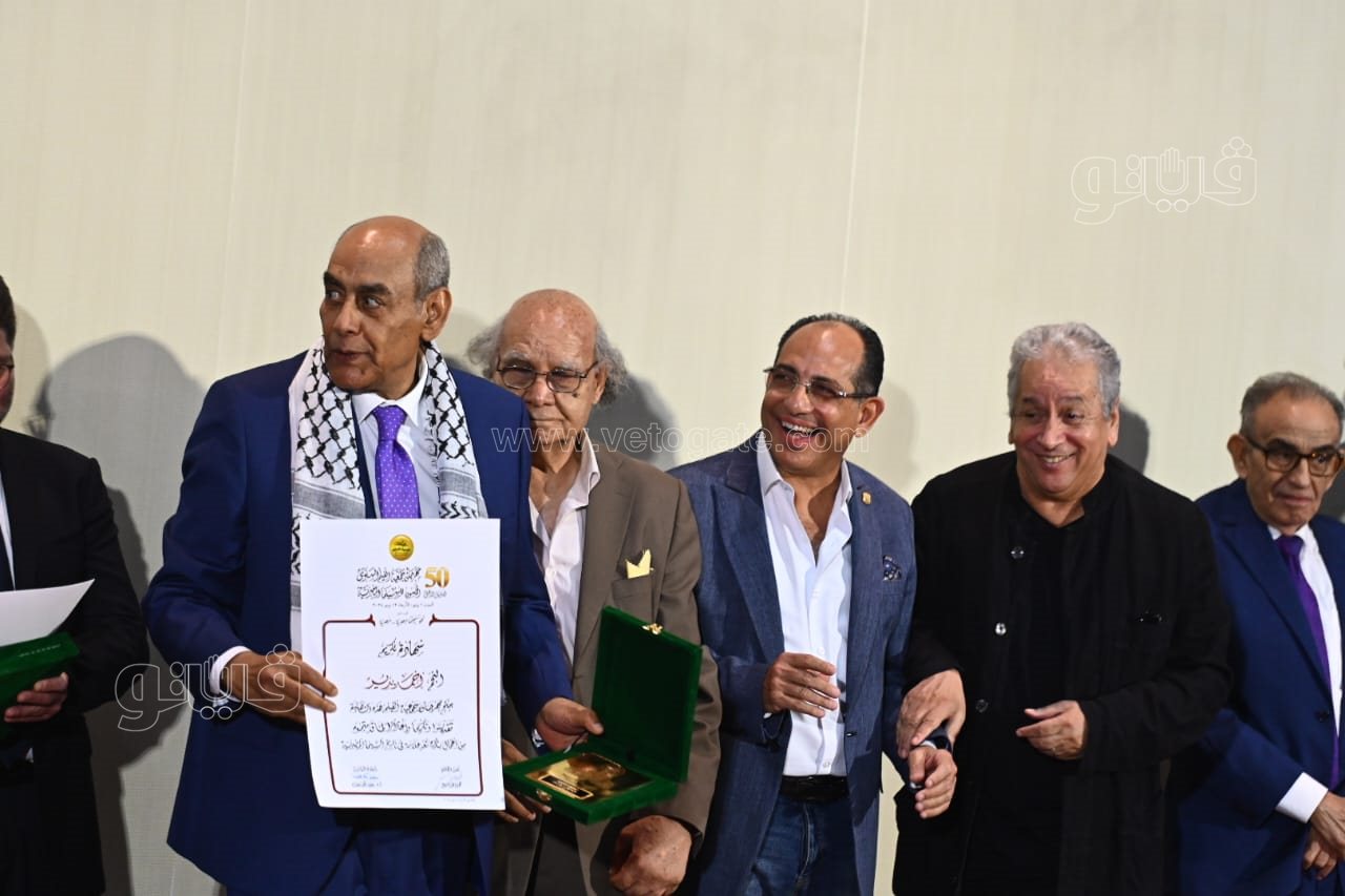 وحرص الفنان أحمد بدير، على حضور الحفل، وظهر بالشال الفلسطيني، دعما للشعب الفلسطيني في صموده ضد قوات الاحتلال الصهيوني، والفنانة إلهام شاهين وعدد من صناع السينما.