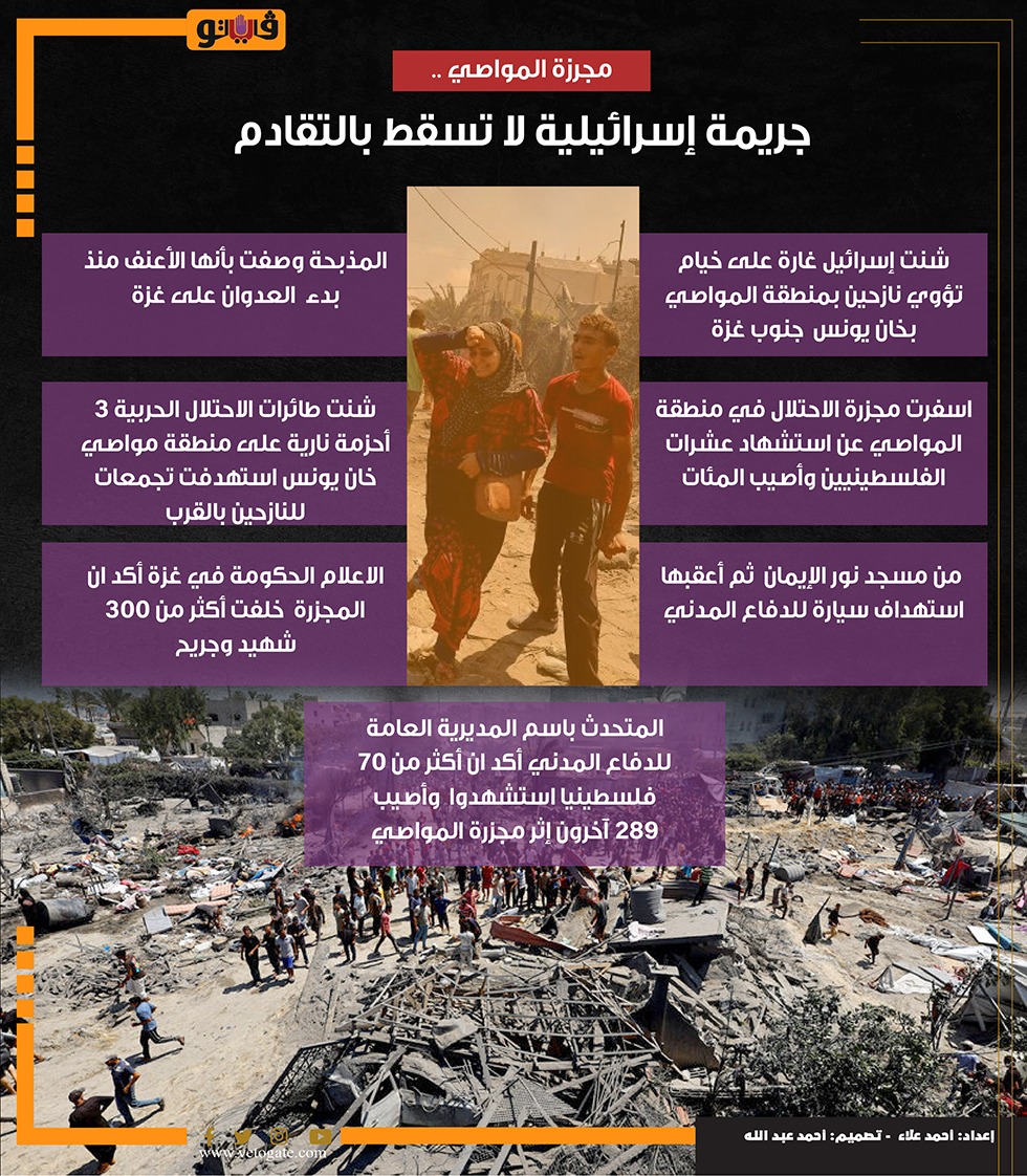 مجرزة المواصي، جريمة إسرائيلية لا تسقط بالتقادم (إنفوجراف) الأحد 14/يوليو/2024 - 11:44 م 7/14/2024 11:44:28 PM مجزرة المواصي، فيتو احمد علاء شارك طباعة 18 حجم الخط شارك طباعة مجرزة المواصي مواصي خان يونس جنوب غزة المواصي غزة